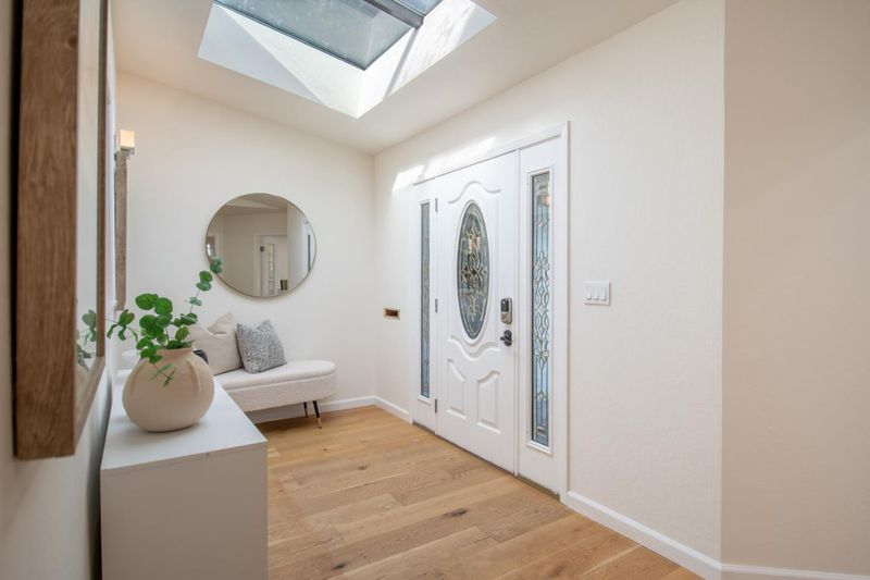Nestled in the desirable Castlemont neighborhood of West San Jose, this beautifully updated 4BD/2BA home exudes timeless elegance and modern living. Recent upgrades include fresh interior and exterior paint, newly painted doors with updated hinges, refinished cabinets, and more. A formal entryway with a large skylight bathes the space in natural light. The spacious living room features a stunning fireplace, a sun tunnel, and a sliding door to the backyard, seamlessly flowing into the open gourmet kitchen. The kitchen offers ample cabinetry, a breakfast bar, and brand-new appliances including a dishwasher, stove, and range hood. The primary suite boasts an expansive walk-in closet and a large ensuite bath with dual sinks, a separate stall shower, and an oversized soaking tub. A secondary bedroom impresses with high ceilings, two skylights, and a charming bay window. Enjoy outdoor living in a spacious backyard featuring a paved patio, low-maintenance artificial lawn, and a cozy outdoor fireplaceideal for entertaining and relaxing. Owner solar system and EV charger. Prime location, just 0.3 miles from Marijane Hamann Park, with a short drive to premier shopping and dining at The Pruneyard, Santana Row, and downtown Campbell and easy access to Highways 280 and 880.