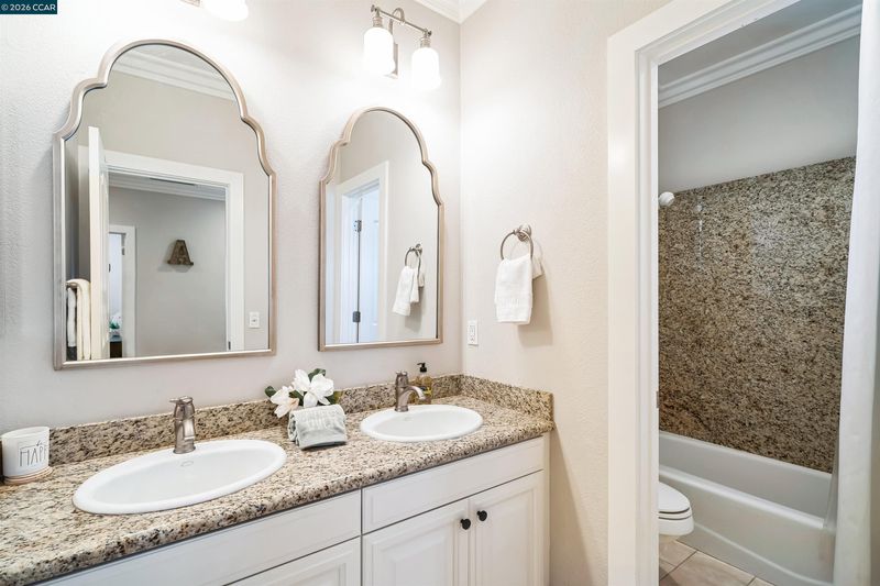 - Shower Over Tub, Solid Surface, Split Bath, Tile, Updated Baths, Double Vanity, Granite, Stone, Window