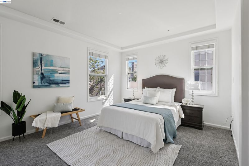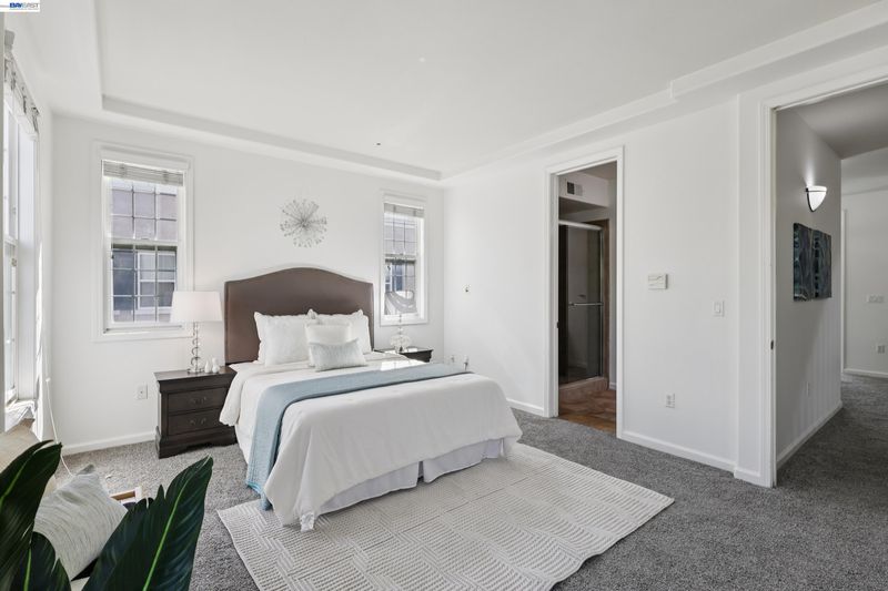 Experience elevated living in this beautifully designed townhouse-style home, where modern style meets everyday comfort. Thoughtfully crafted to feel like a single-family residence, this corner unit features a multi-level layout with 3 spacious bedrooms and 3.5 bathrooms, each bedroom offering its own private en-suite for comfort and privacy. The main level serves as the central gathering space, showcasing a contemporary kitchen that flows seamlessly into the dining and living areas—ideal for both relaxed living and entertaining. A conveniently located powder room and abundant natural light enhance the warm, inviting atmosphere. Step outside to enjoy the front porch, perfect for morning coffee or evening relaxation. Additional highlights include an attached garage, well-designed interiors, and access to community amenities such as a pool and clubhouse within a low HOA setting. Ideally located near top-rated schools including Emerald High School, with easy access to shopping, dining, and major commuter routes like I-580. Nearby Emerald Glen Park adds to the appeal with community events and a popular farmers’ market. A perfect blend of comfort, convenience, and location in the heart of Dublin’s vibrant lifestyle.