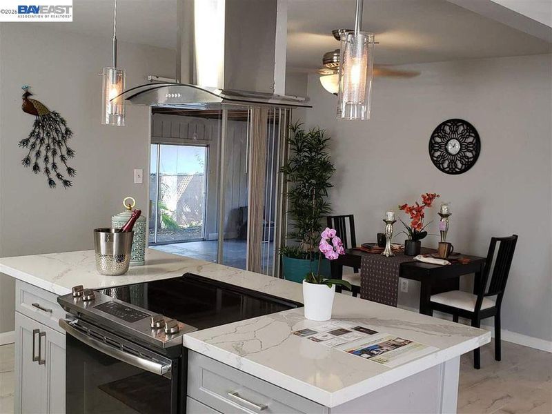 - Dishwasher, Microwave, Oven, Refrigerator, Dryer, Washer, Stone Counters, Eat-in Kitchen, Kitchen Island, Oven Built-in, Pantry