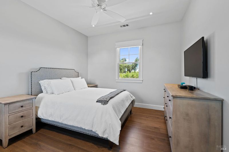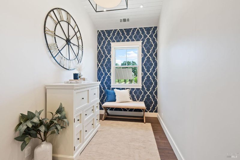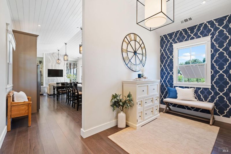 Located in Napa Valley's famed Oak Knoll AVA, this beautifully refined estate captures the essence of wine country living on approximately two private acres. A thoughtful blend of timeless sophistication and relaxed rural charm defines the residence, where sun-filled bedrooms and tastefully appointed bathrooms create a sense of comfort and understated luxury throughout. Fully renovated in 2016, the home offers an open, flowing floor plan ideal for both everyday living and effortless entertaining. At the heart of the home is a stunning chef's kitchen that opens seamlessly to a vaulted great room anchored by a dramatic quartz fireplace. Dual, temperature-controlled glass wine displays provide space for up to 350 bottlesperfectly suited for the avid collector or casual enthusiast alike. A 12-foot sliding pocket door extends the living space, embracing the indoor-outdoor lifestyle Napa Valley is known for. Step onto the expansive patio overlooking the pool and hot tub, an inviting setting for gatherings large or small. Beyond, an acre of professionally maintained Cab Sauv, Merlot, and Cab Franc vines enhances the landscape and offers an authentic vineyard backdrop. Completing the property is a detached studio, ideal for a private office, creative space, or peaceful retreat. All of this is just minutes from downtown Napa's celebrated dining, shopping, and tasting rooms offering a rare opportunity to enjoy the very best of Napa Valley living in a truly special setting.