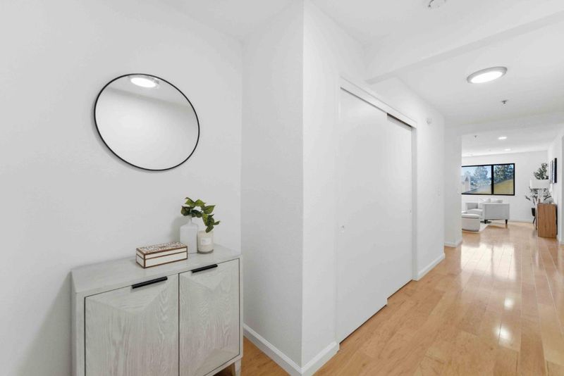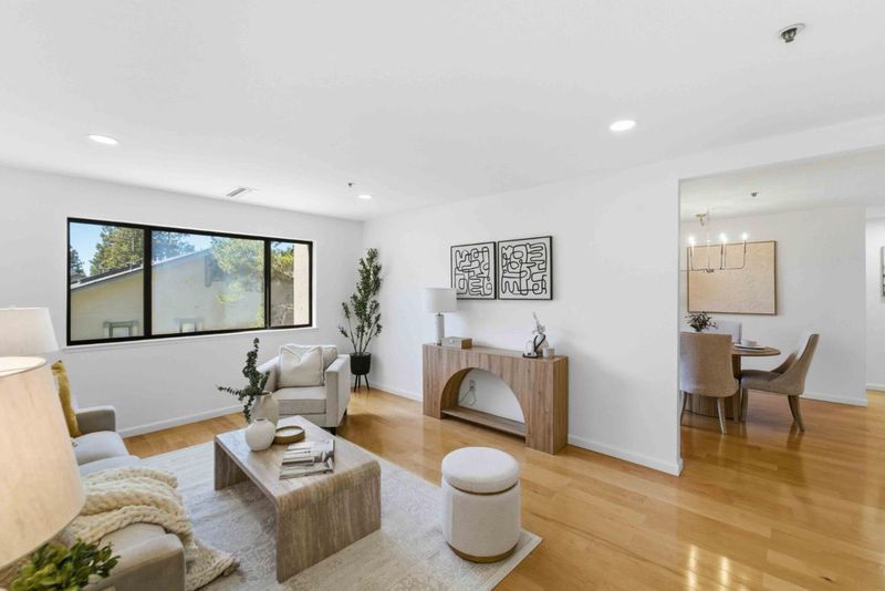 Stunning and Largest unit you will find under $850K. 1456 sq feet is larger than some surrounding single family homes. This one story unit in gated community with an elevator is the perfect "Roommate Floorplan"- with beds and baths on opposite sides of the unit. Fabulous sought after open concept allows interaction from in kitchen with quartz counters to living & dining rooms. Freshly painted and recessed lights creates a modern vibe. Large windows allows natural light and spacious terrace offer views you can enjoy from a high floor. Primary bedroom is approximately 15' by 11' and offers plenty of room for an office space or work out area. Primary bath has dual sinks with elegant quartz counter, large closet & bathtub/shower. Secondary bedroom is a massive 17' by 11' with bay window & walk in closet. Guest bath has quartz counter & large soaking tub. Intelligent design means no shared walls. Other extras: brand new AC ($12K to install), Full size Washer/ Dryer, Refrigerator, storage closet, elevator, 2 parking spaces, trash chute, low Santa Clara utilities and packages delivered to your door! HOA covers a ton! Hot and Cold water, swimming pool, rec room with PING PONG :-) and pool table. Easy commute to Apple, Nvidia. Enjoy the peace that a high floor offers.
