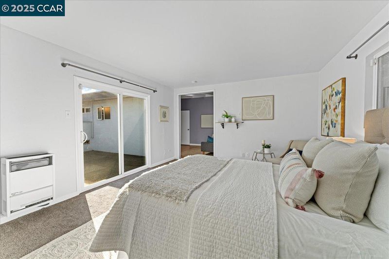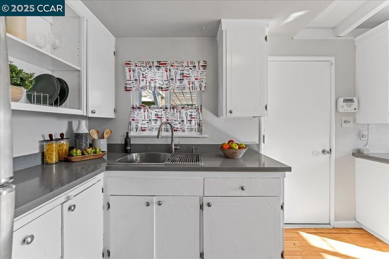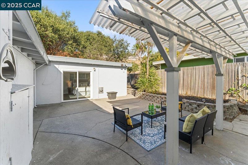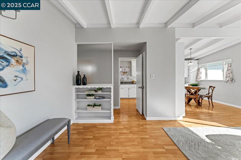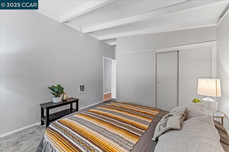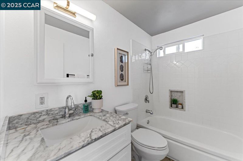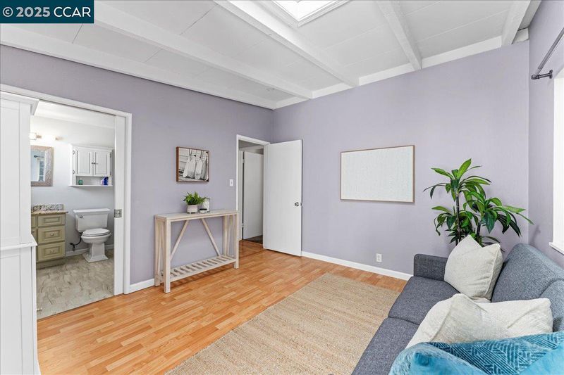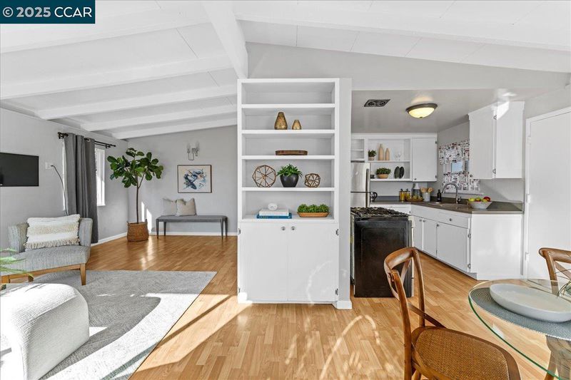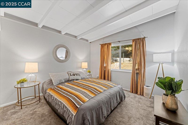 This charming single-story home offers bright natural light, bay breezes, and a perfect blend of warmth, character, and modern updates. The living room features soaring open-beam ceilings, a classic red brick fireplace, and large picture windows. The inviting layout flows into the dining area and updated kitchen with quartz countertops, crisp white cabinetry, and open shelving for a fresh, airy feel. The home includes 3 comfortable bedrooms, 2 updated bathrooms, and a large skylit bonus room ideal for a home office, gym, or playroom. The spacious primary suite offers plenty of natural light with room for a sitting area or workspace. One bath features a sleek marble vanity and tiled shower, while the other highlights a soaking tub against a dramatic full accent wall of modern tile. With no steps to entry, the home is both accessible and easy to enjoy. Centrally located with quick access to I-80, I-580, Hwy 4, the Richmond–San Rafael Bridge, and the Carquinez Bridge. Commuting is a breeze with the San Francisco Bay Ferry, Amtrak, and Richmond BART all close by. Come FALL IN LOVE! Open Sunday, 12–2 pm.