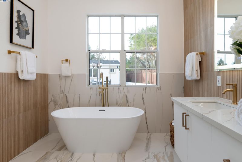 - Shower Over Tub, Split Bath, Tile, Updated Baths, Double Vanity, Jack & Jill, Multiple Shower Heads, Window