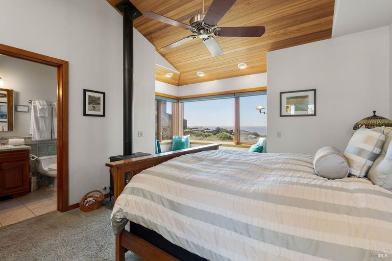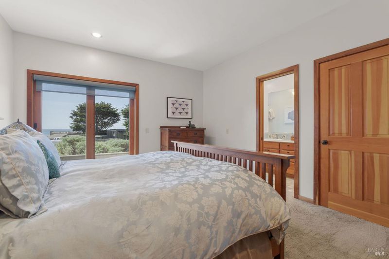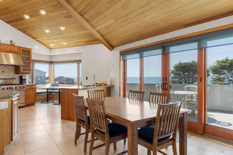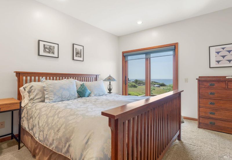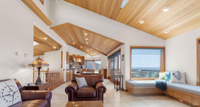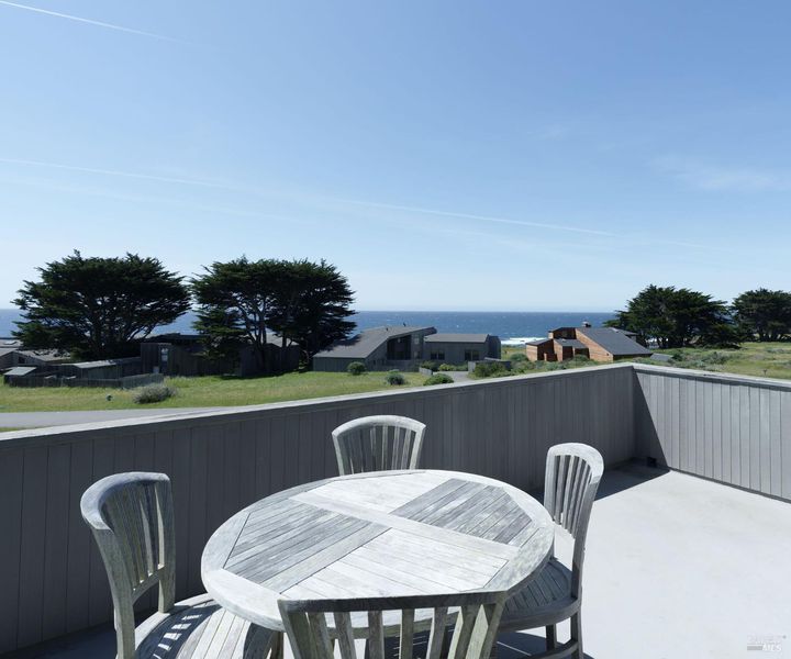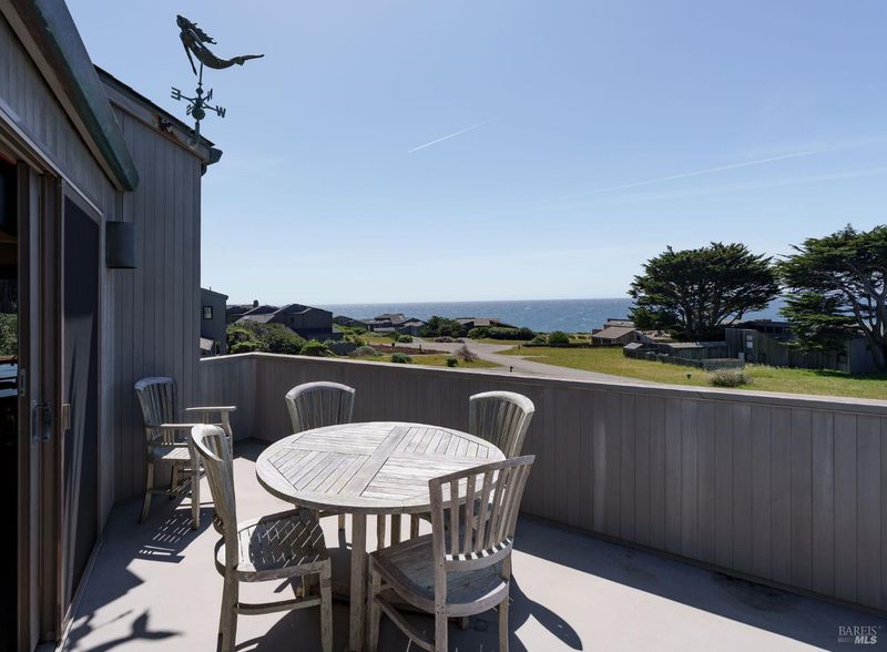 Enjoy panoramic ocean views from most every room in this stunning west side home. Just moments to bluff top trails, Smuggler Cove, Pebble Beach and Ohlson Recreation Center. The elevated lot makes for great whale watching and star gazing. Oversized stunning entry with large closet. Upper level is bright and open for entertaining with a gourmet kitchen, breakfast nook, dining, living area and half bath. Opening up to view deck. Lower level features two large bedroom suites opening to decks. A special separate bed/bath studio is charming and very private. Private Spa area and courtyard. One car garage with Tesla charger. Enjoy this great location on The Sea Ranch; Biking, hikes, pools and so much more. A short drive to Gualala for shopping, medical or golf. Popular short term rental. Sold Turn key, ready to move in.