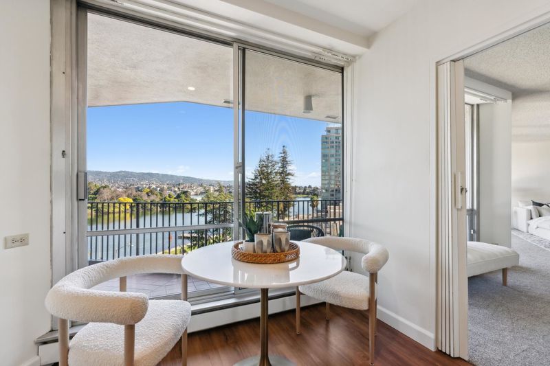 This spacious fifth floor CO-OP condo offers breathtaking, expansive views of Lake Merritt from every window, and from the long balcony that spans the length of the unit. The remodeled eat-in kitchen, fresh paint, new carpet, new modern light fixtures, and open living areas create a warm and inviting space to call home. Two spacious bedrooms have generous closets, and views, and there's ample hall closets as well. This luxe co-op unit includes one parking space, guest parking, bicycle storage, roof-top access. Water and heat included in dues. Also included are on-site management, maintenance & custodian staff, and 24-hr front desk concierge. $19M seismic retrofit in 2019. Enjoy walks around Lake Merritt, access near to BART, bus, restaurants, museum, and the farmers market. Truly an urban luxe lifestyle. For info on Lake Royal community, visit https://www.lakeroyal.org/