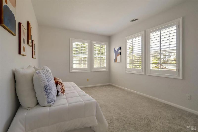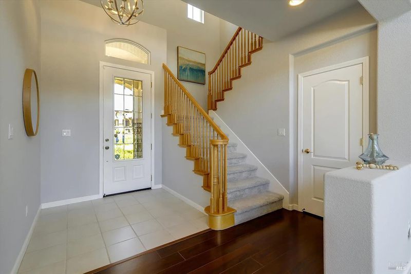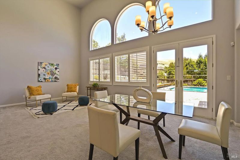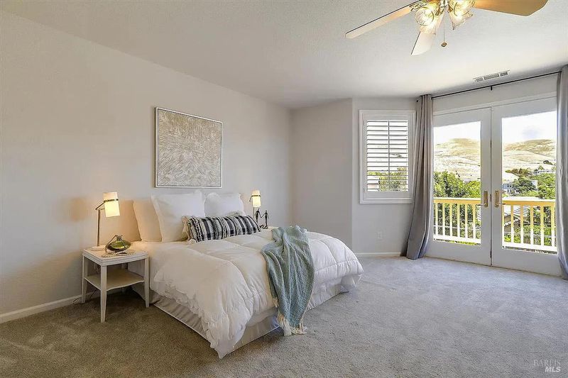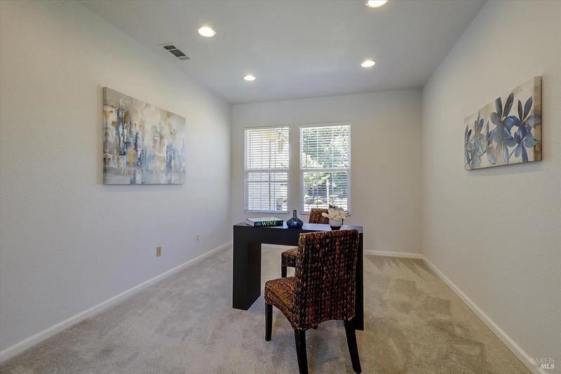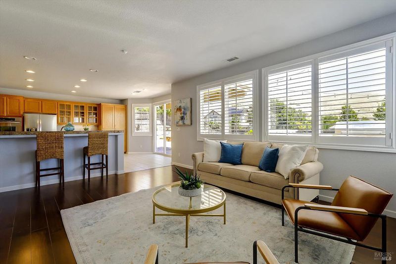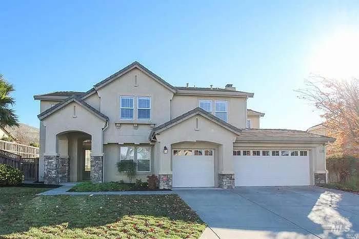 Move right in to this beautifully appointed 3,084 sq ft two-story residence located in the prestigious Hiddenbrooke Golf Community on Marshfield Road in Vallejo. This 4-bedroom, 2.5-bath home offers a thoughtfully designed open-concept floor plan with a blend of hardwood and carpet flooring, custom window coverings, and roof-mounted solar designed to help reduce energy costs. The expansive kitchen features tiled flooring, granite countertops, and abundant cabinetry and counter space, seamlessly opening to a spacious family room filled with natural light. This layout is ideal for both everyday living and entertaining. Upstairs, the primary suite offers a private retreat complete with a fireplace, balcony, walk-in closet, and an en-suite bath featuring double vanities. Two additional bedrooms are located on the second floor, while a fourth room on the main level is currently configured as a home office, providing flexible use options. The private backyard is designed for relaxation and entertainment, showcasing a beautiful in-ground pool and swim spa with an electric pool cover system. A large BBQ island overlooks scenic hillside views, creating an exceptional outdoor living experience. Located within the desirable Hiddenbrooke community, this home combines space, functionality, and resort-style amenities in a highly sought-after setting.