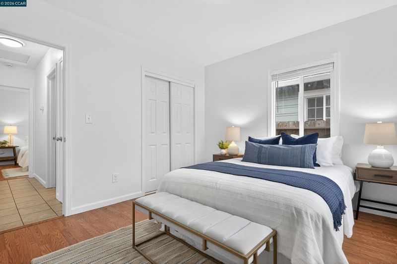 This home is dialed in and ready to move into. Updated kitchen with newer cabinets. New dishwasher & stove/oven. New light fixtures throughout. Upgraded laminate flooring. Interior & Exterior freshly painted. Dual Pane Windows, spacious laundry area. Detached Garage/Storage area. Front yard is nicely landscaped with a nice new concrete walkway. Large backyard - Great for entertaining. Property has a Roof Clearance and a Section One Termite Clearance.