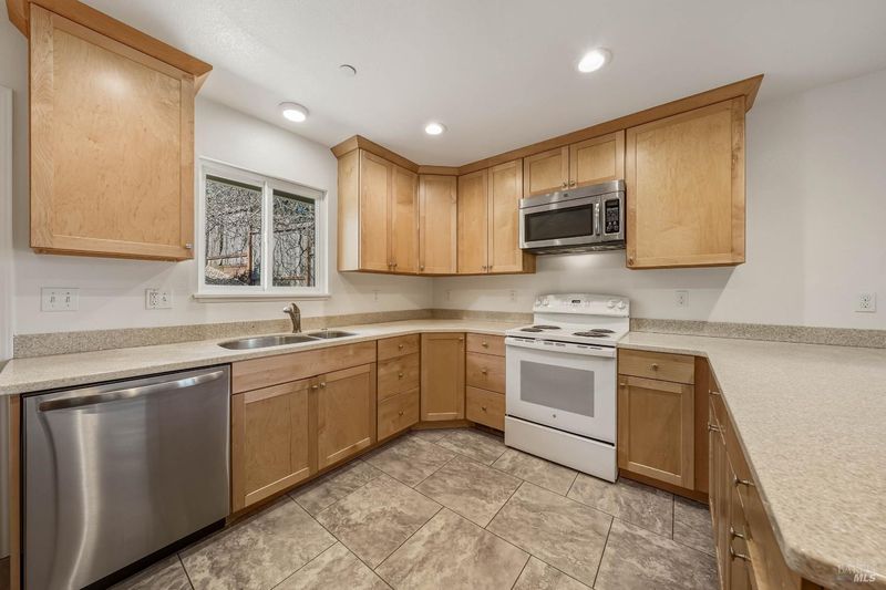 Large newer build home in Kelseyville. Fresh interior paint. Feels like a country setting yet only a few minutes from down town. 2,127 sq ft home on a 11,761 sq ft lot. 5 bedrooms, plus extra room/office and 2 full bathrooms. Newer septic system recently installed. 2 car garage. Terraced back yard with patio and deck. Tiled laundry room. 2 possible living rooms open to kitchen. Kitchen features tile flooring, pantry, dual sink, electric stove, dishwasher, refrigerator and wrap around counter. Laminate flooring throughout and ceiling fans. Canned/recessed lighting throughout. Room under house for storage. House is equipped with on demand generator.