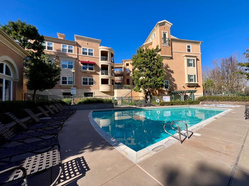 Welcome to the stunning 2BR, 2BA condo @1310 Saddle Rack St #347, a beautifully maintained gem in the gated Midtown Plaza community, offering 1,258 sq ft of inviting, modern living. Step inside to an open, airy floor plan designed for effortless living: a spacious living/dining area flows seamlessly into a gourmet kitchen featuring sleek granite countertops, stainless steel appliances, under-cabinet lighting, and a convenient breakfast bar perfect for casual meals or entertaining. Meticulously maintained hardwood floors keep things easy-care and stylish, while the private balcony overlooks a peaceful landscaped courtyard your ideal spot for morning coffee or sunset relaxation. Both BRs are generously sized with laminate floor & carpet & large walk-in closets. Luxurious master suite boasts a double vanity, deep soaking tub & plenty of natural light. Inside laundry adds everyday convenience, plus your own attached underground garage parking. Enjoy resort-style amenities right at home: heated solar pool, spa, fitness center, clubhouse, play area, and secure gated entry. HOA covers it all for worry-free living. Prime location puts you minutes from Santana Row shops and dining, tech hubs, dog park, and Safeway. Everything you need is close! See this Now b4 it's gone.