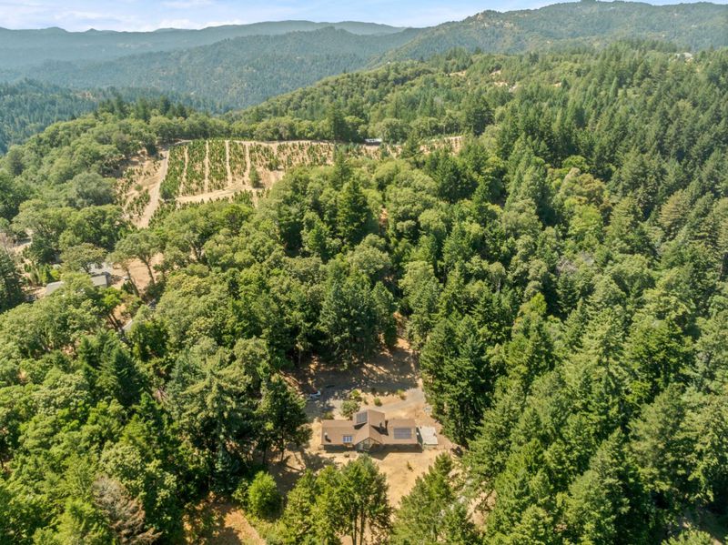 Large Tahoe-Inspired Home on 4 Acres, with Mountain and Valley Views, tucked into a desirable enclave in the Los Gatos Hills with tree-lined views out to Mount Ummanhum and across Silicon Valley, amidst gently sloped front, side and rear yard areas with fruit trees and ample room for a small arena, a barn, a sport court, a pool plus multiple sites for outbuildings, tents or whatever! Start each day in the grand primary suite with its walk-in closet and oversized tub with jets for a stay-at-home spa experience. The kitchen is a culinary enthusiast's delight, equipped with twin granite peninsulas, a gas cook top, a combo oven with convection, and a warming drawer. Treat your guests to atrium dining under the sun by day and the stars by night. Soaring open beam ceilings and walls of glass impart a spacious feel throughout, made warm with rich wood accents. Enjoy the wood stove and fireplace, plus brand new Energy Star HVAC, backed by solar power and double pane windows to maximize your comfort year round while keeping your utility bills at a minimum. The separate family room with cathedral windows is the perfect vantage point to enjoy the view, or you can ascend the open staircase up to the giant loft area for recreation and entertainment. This is the one you've been waiting for!