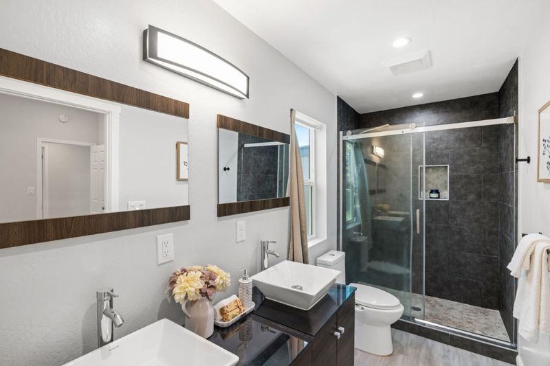 Situated in the heart of Santa Clara, this stunning mid-century modern home sits on a spacious lot with expansion potential. A stylish front deck with a retractable SunSetter awning welcomes you inside, where the sun-filled living room with soaring ceilings flows seamlessly into the eat-in kitchen. The home features three generously sized bedrooms and two bathrooms, offering both comfort and functionality. Before the seller moved in, a full bathroom and a walk-in closet (~100 sq. ft.) were added with permits. The garage was remodeled with new epoxy flooring, and a whole-house water softener system was installed. The backyard was also renovated, with the grass removed, gravel added to create a sitting area. Perfectly located near Caltrain, major freeways, and world-class employers such as Nvidia, Intel, and Apple, this home also provides convenient access to Santa Clara University, Levis Stadium, Santana Row, Valley Fair, Costco, and nearby parks. A rare opportunity to enjoy both modern comfort and Silicon Valley convenience.