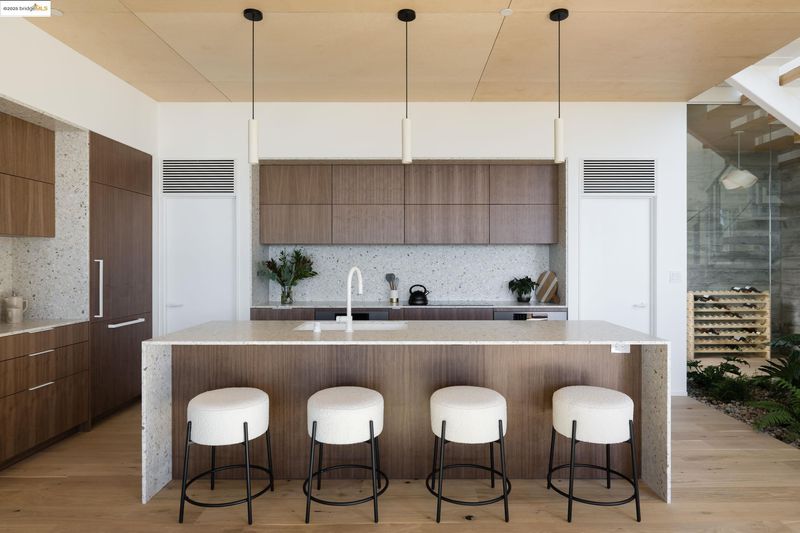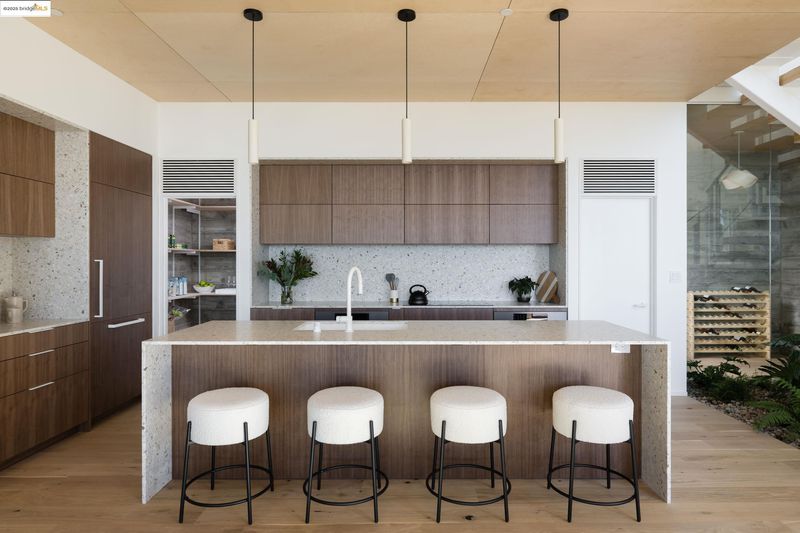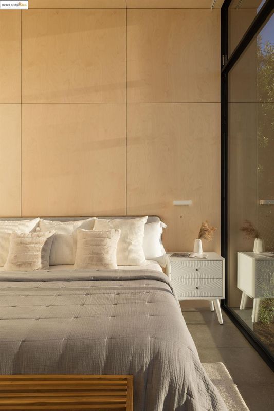 Fold House, the latest creation from the women architect-duo Artifact Collaborative, is a new construction home dramatically situated in the Berkeley Hills. Every west-facing window & door frames an unparalleled 180-degree panorama of San Francisco & the Golden Gate Bridge, offering a daily spectacle you won't find anywhere else. The home's name is derived from its central design motif: the dynamic articulation of planes that create interlocking volumes. This concept is expressed internally by two-story floating staircases that create vertical sculptures, while the unique creased roofline peels upward to capture light through a triangulated clerestory window, bathing the interiors with natural light. This is truly a home designed to both inspire & endure. Beyond its dramatic aesthetics, the Fold House offers an uncompromising modern lifestyle defined by sustainability and resilience. This all-electric home is engineered for the future, featuring a solar PV system with battery & high-efficiency heat pumps