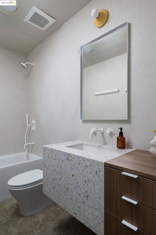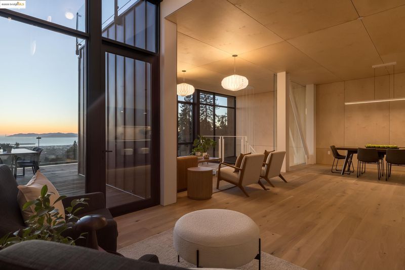 Fold House, the latest creation from the women architect-duo Artifact Collaborative, is a new construction home dramatically situated in the Berkeley Hills. Every west-facing window & door frames an unparalleled 180-degree panorama of San Francisco & the Golden Gate Bridge, offering a daily spectacle you won't find anywhere else. The home's name is derived from its central design motif: the dynamic articulation of planes that create interlocking volumes. This concept is expressed internally by two-story floating staircases that create vertical sculptures, while the unique creased roofline peels upward to capture light through a triangulated clerestory window, bathing the interiors with natural light. This is truly a home designed to both inspire & endure.Beyond its dramatic aesthetics, the Fold House offers an uncompromising modern lifestyle defined by sustainability and resilience. This all-electric home is engineered for the future, featuring a solar PV system with battery, high-efficiency heat pumps for year-round comfort, and an EV charger. Built from the ground up to the latest standards, it features seismic-resistant foundations (pier and grade beam/mat slab) and fire-hardened construction with durable standing seam metal and plaster and a fire sprinkler system
