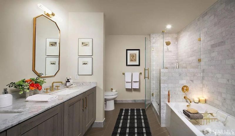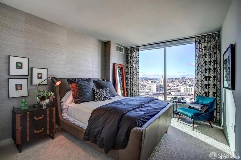 Welcome to The Harrison, where modern urban luxury meets timeless design atop Rincon Hill. This beautifully appointed two-bedroom, two-bath residence offers a spacious, open floor plan framed by floor-to-ceiling windows showcasing the city skyline views, including breathtaking sunsets and the nightly Salesforce Tower light show. Gracious interiors curated by renowned designer Ken Fulk feature diagonal-planked Siberian oak flooring throughout the living spaces, polished white slab Carrara marble countertops, Studio Becker Ash Molina cabinetry, and Waterworks unlacquered brass fixtures throughout. The custom chef's kitchen is equipped with Bertazzoni appliances and an integrated Sub-Zero refrigerator, blending refined aesthetics with exceptional functionality. Thoughtful, elegant upgrades further elevate the home's sophistication. The Harrison offers an unparalleled residential experience with world-class amenities including Uncle Harry's exclusive 49th-floor resident lounge, a grand penthouse salon, a 2,500-square-foot fitness center, steam room, heated pool and spa, and valet parking. Unique to the building is The Harrison Attach, providing personal concierge service 24/7. Ideally located just steps from The Embarcadero, acclaimed restaurants, and premier shopping, this residence delivers elevated city living at its finest.