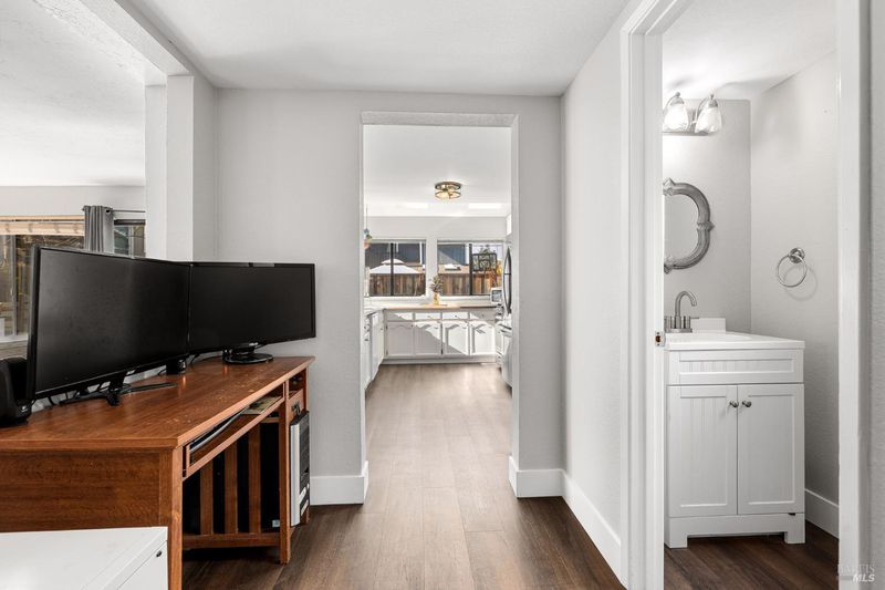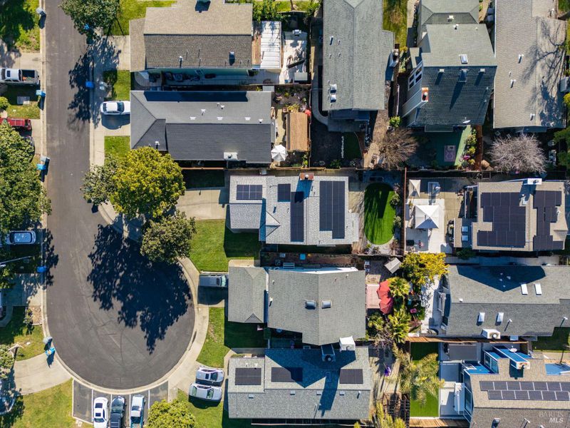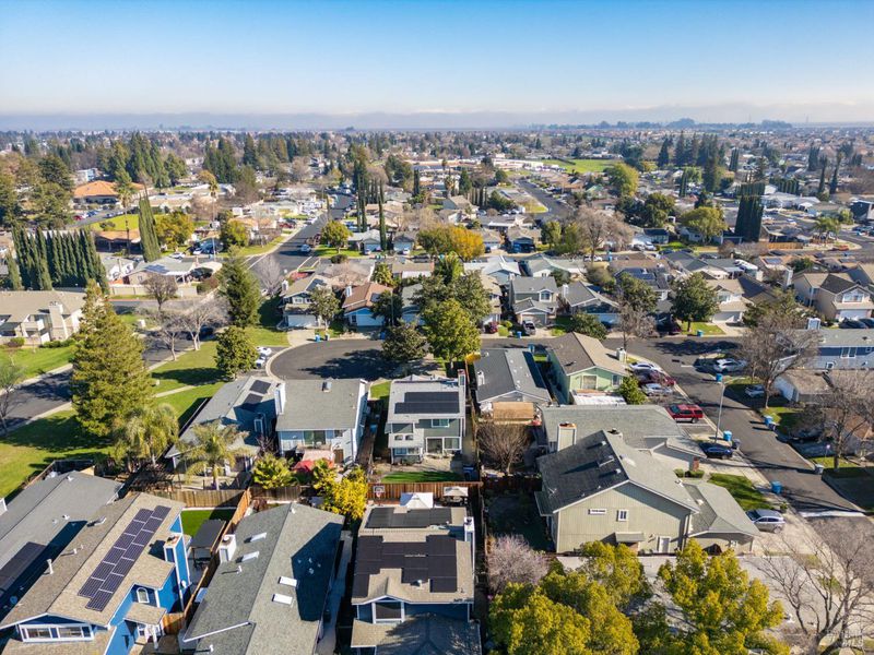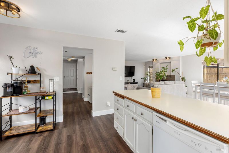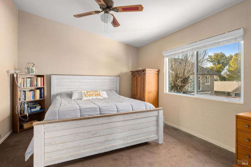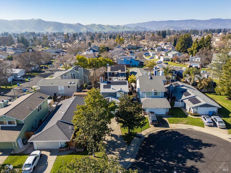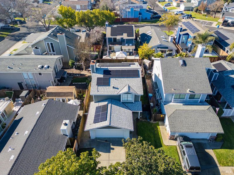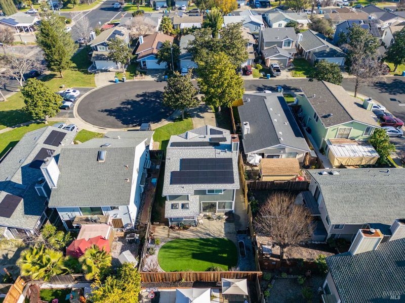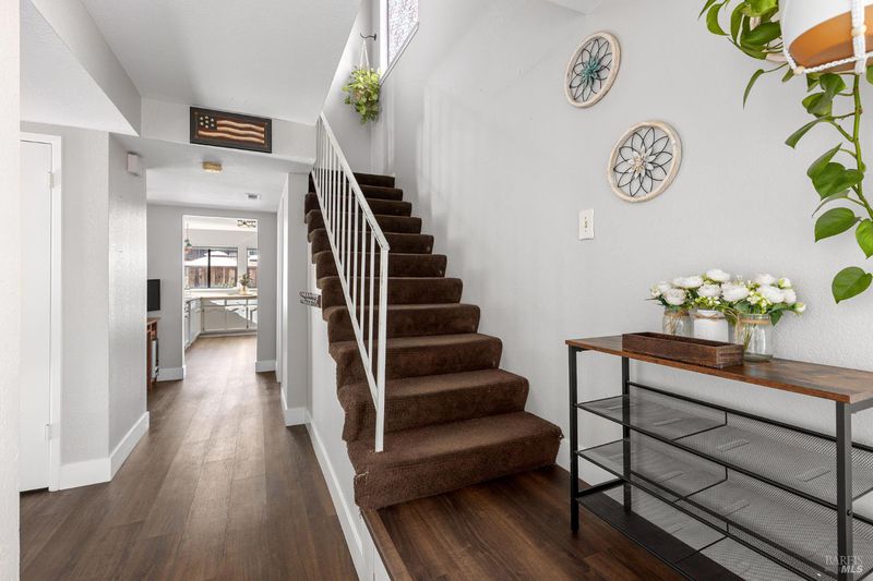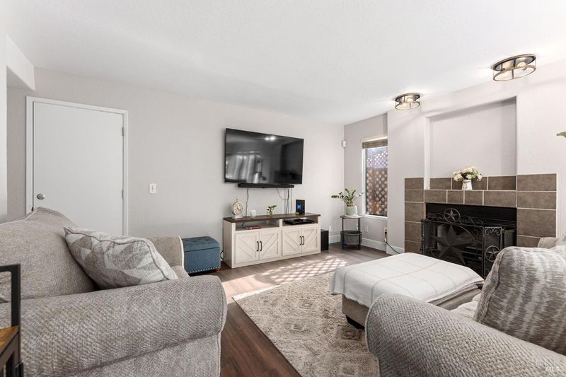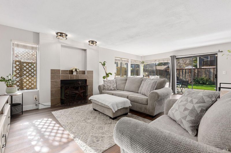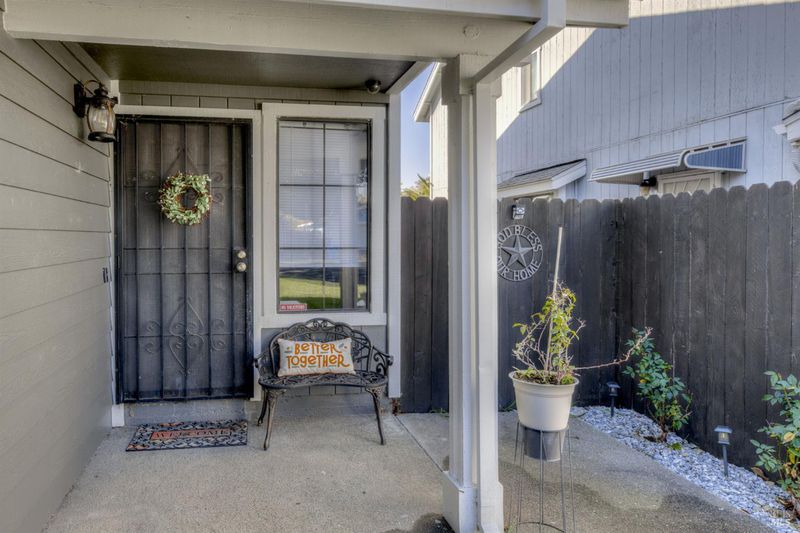 Located in the Dream Street neighborhood, this thoughtfully updated home offers three bedrooms and two and a half bathrooms in a setting that blends comfort, function, and convenience. Positioned at the end of a cul de sac with nearby guest parking and an oversized driveway, the location provides both privacy and ease of access. Inside, warm wood style LVP flooring runs throughout the main living spaces, creating a cohesive and welcoming feel. The downstairs layout is bright and open, with abundant natural light and a cozy fireplace anchoring the living area. A conveniently located half bath downstairs adds everyday functionality and features an updated vanity. The kitchen features a breakfast bar, generous cabinetry, and large windows that overlook the backyard, allowing natural light to fill the space while keeping a connection to the outdoors. Upstairs, the primary suite offers a spacious retreat complete with a remodeled en suite bathroom featuring a modern farmhouse aesthetic, shiplap detailing, and a beautifully tiled shower. The guest bathroom has also been fully remodeled and includes a tiled shower, modern vanity, and updated lighting and mirrors. The backyard is designed for comfortable living with minimal maintenance turf, raised planter beds, and space to relax or entertain. Added highlights include owned solar, recently replaced roof, and close proximity to Raley's Shopping Center, dining, schools, and nearby parks. With its functional design, recent updates, and convenient location, this home presents a well-rounded opportunity for a variety of lifestyles.