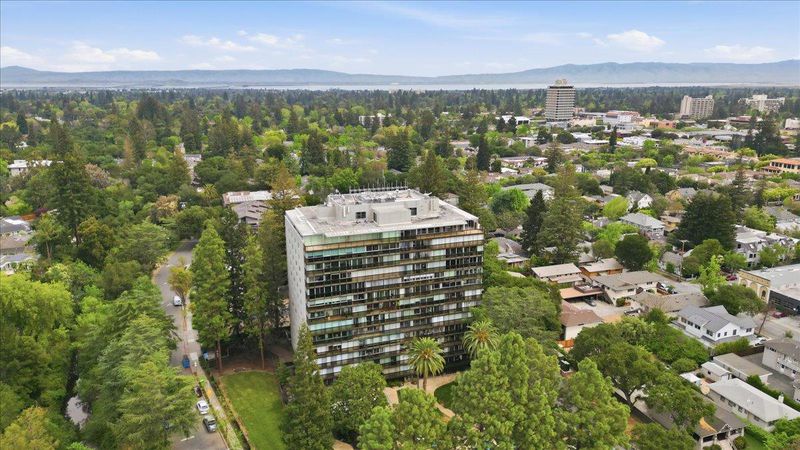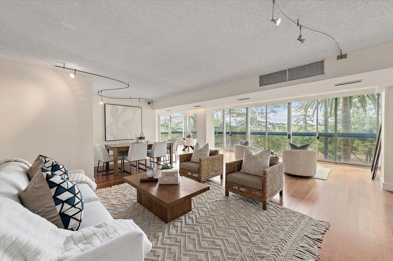 Experience refined, loft-inspired living in this exceptional 4th-floor corner residence in the heart of downtown. Surrounded by serene tree-top views, this desirable home is filled with natural light, highlighted by expansive floor-to-ceiling windows and an airy, open-concept layout. Designed for both everyday comfort and effortless entertaining, the living, dining, and kitchen spaces flow seamlessly together. Elegant hardwood floors and a well-appointed kitchen add style and functionality, creating a space that feels both sophisticated and inviting. As a corner unit, it enjoys windows on two sides, reducing shared walls with neighbors and maximizing natural light throughout the day. Whether enjoying a quiet morning at home or stepping out to explore, the location offers unmatched convenience just moments from Stanford, Caltrain, fine dining, boutique shopping, and vibrant city life. Residents enjoy a full suite of amenities, including 24-hour front desk, designated parking, fitness center, beautifully maintained pool and outdoor entertaining area, offering an exceptional blend of comfort, convenience, and elevated urban living. HOA dues cover most utilities for added ease. Great opportunity for both homeowners and investors to own in one of the top communities in Palo Alto.