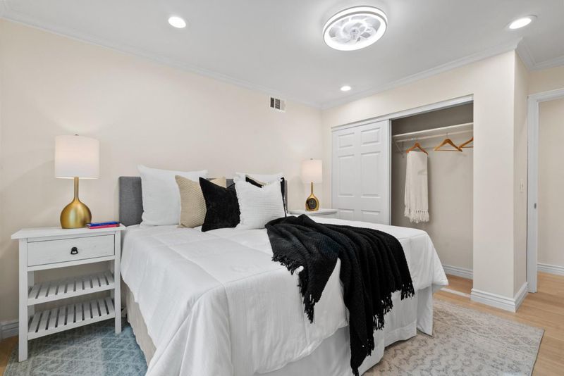 Welcome to your new home! This beautifully updated property is tucked away on a quiet court and filled with natural light, has an open concept floor plan and feels like new construction. When you walk in you'll notice cathedral ceilings, a dramatic wall of windows and modern hardwood flooring throughout. The fully remodeled kitchen offers quartz countertops, slate appliances, a stand alone island and plenty of space to gather and entertain, with 2 sliding glass doors pouring into the backyard. Spa inspired bathrooms add a luxurious feel. The permitted 4th bedroom provides extra flexibility, while the primary suite features two closets for abundant storage. Owned solar and a finished attached two car garage add convenience and value. Outside, the incredible front yard offers multiple sitting areas, a rose garden, mature fruit trees, and a covered BBQ patio. The spacious backyard includes a pergola, play structure, and an insulated cottage ideal for an office, gym, or playroom. Great schools, shopping, easy highway access and nearby parks and walking trails are the cherry on top! This home is a 10 out of 10, you will not be disappointed!