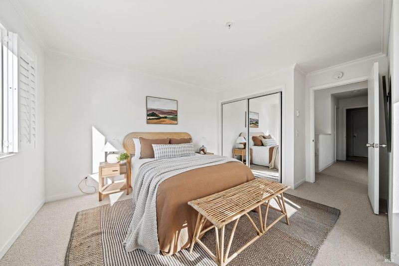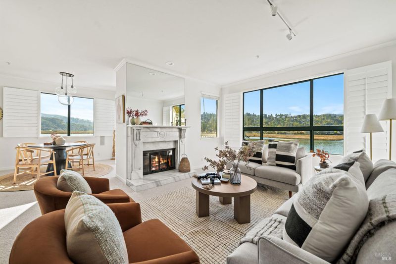 This is a rare opportunity to secure a top-floor unit in one of Mill Valley's most scenic waterfront communities at an outstanding value! Offered at a very compelling price compared to recent sales. Set at the top of Sunrise Pointe, this upper-level condo offers privacy, abundant natural light, and sweeping views of the Bay, surrounding hills, and Mount Tam. Nearly every room opens to the outdoors, with two balconies that capture morning light and peaceful sunsets, creating a true indoor-outdoor lifestyle. The living room is warm and inviting, centered around a fireplace and framed by expansive views, making it an ideal space for relaxing or entertaining. Skylights enhance the airy feel, while the thoughtful two-level floor plan provides separation between living and sleeping spaces. The primary suite feels like a retreat, complete with its own private deck, a walk-in cedar closet, and an ensuite bath featuring dual vanities, a soaking tub, and a separate shower. The kitchen is both functional and inviting, with stainless steel appliances and a generous breakfast nook, ideal for casual mornings or relaxed gatherings. A dedicated laundry room and ample storage add everyday ease. Enjoy easy access to a serene waterfront walking path, nearby parks, and local favorites for dining and coffee. Residents also enjoy a community pool, spa, trails, a detached garage, guest parking, and the opportunity to kayak and fully embrace the surrounding natural setting.