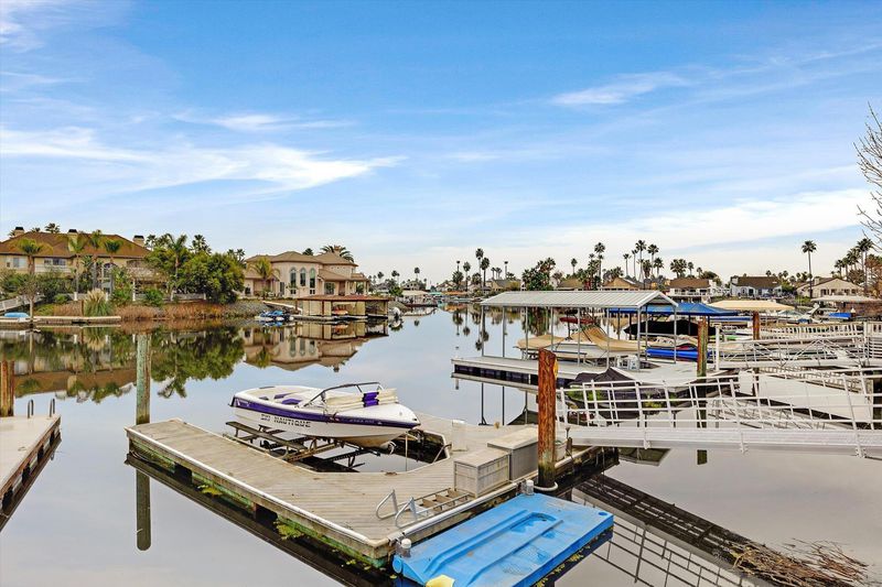 OPEN HOUSE: Sat. 2/21 1pm-4:30pm ~Exceptional price on this especially exceptional move-in ready modernized open floor plan Rancher on a premium corner lot on deep water with tranquil views from upgraded kitchen, living area with fireplace, dining area as well as from composite deck plumbed for natural gas bbq, and boat dock with new gangway. On the quiet side are 3 bedrooms, 2 remodeled baths, one in suite with 2nd fireplace and cozy bedroom retreat. Although solar powered, this home’s living areas are so bright, you are going to need shades with or without the led lighting. With the nearly maintenance-free landscaping on drip system, you will have plenty of time to enjoy endless water adventures, as well as numerous activities at the nearby community center, dog park, & pickleball courts. And don’t forget $1 Taco Tuesday at the nearby Mexican Taqueria. Finally, the landlubbers will love the very-accessible, extra-long RV access so they Can! play snowbirds for the winter sports season before the snowmelt flows down the 1200+ miles of delta waterways on its way to your dream backyard. Nothing left to do but unpack and live your best life ~~~ 3D Virtual Tour~ https://my.matterport.com/show/?m=Zn6GFfM4ZFt.