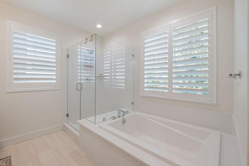 - Double Sinks, Full on Ground Floor, Half on Ground Floor, Primary - Oversized Tub, Primary - Stall Shower(s), Showers over Tubs - 2+, Tub