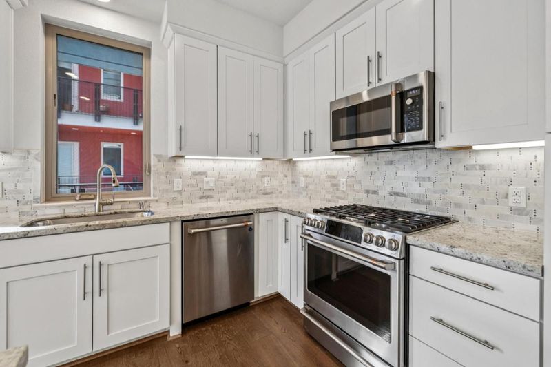 - Countertop - Granite, Dishwasher, Microwave, Oven Range, Oven Range - Gas, Refrigerator
