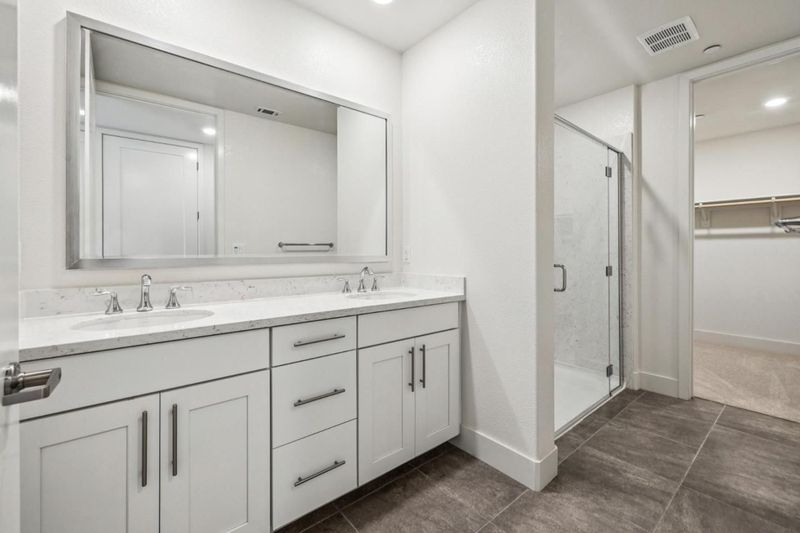 - Shower over Tub - 1, Double Sinks, Marble, Tile, Primary - Stall Shower(s)