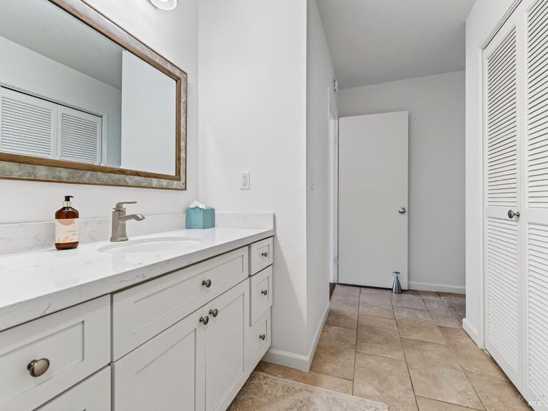 Quartz, Tile, Tub w/Shower Over
