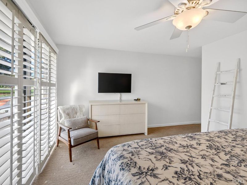 Single-Level Living with Iconic Silverado Fairway views. Take in sweeping views of the golf course, surrounding mountains, and majestic oak trees from this bright, single-level condo in the Fairways at Silverado Resort & Spa. Thoughtfully updated throughout, the home features an updated kitchen with island and quartz countertops, opening seamlessly to the family room and dining area with a soaring cathedral ceiling and cozy fireplace. Two spacious primary suites offer updated vanities, plenty of closet space, and plantation shutters, creating private, comfortable retreats. Expansive front and back patios provide the perfect setting for a peaceful morning coffee or sunset views and front-row seats to the fairway action. Additional highlights include golf cart storage, short term rental capability, central heat and air, in-unit washer and dryer, and access to a well-maintained community pool amid beautifully landscaped grounds. All of this lies within the prestigious Silverado Resort & Spahome of the 2026 PGA Tour Golf tournament.