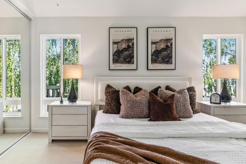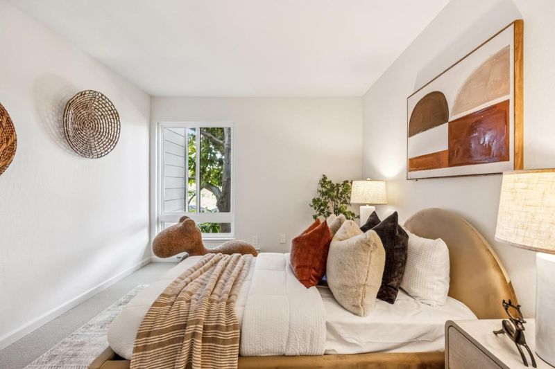 Beautifully updated 3BR/3BA townhome in a central Mountain View location within the desirable Los Altos High School attendance area. Spacious and light-filled with soaring ceilings, abundant windows, and fresh paint and carpet throughout. Remodeled kitchen features granite countertops and quality cabinetry. Flexible floor plan offers two en suite primary bedrooms, ideal for privacy or guests. Enjoy a private, oversized balcony perfect for al fresco dining and relaxation. Additional features include detached garage parking and access to a community pool. Close to Google, Permanente Creek Trail, parks, shopping, and dining.