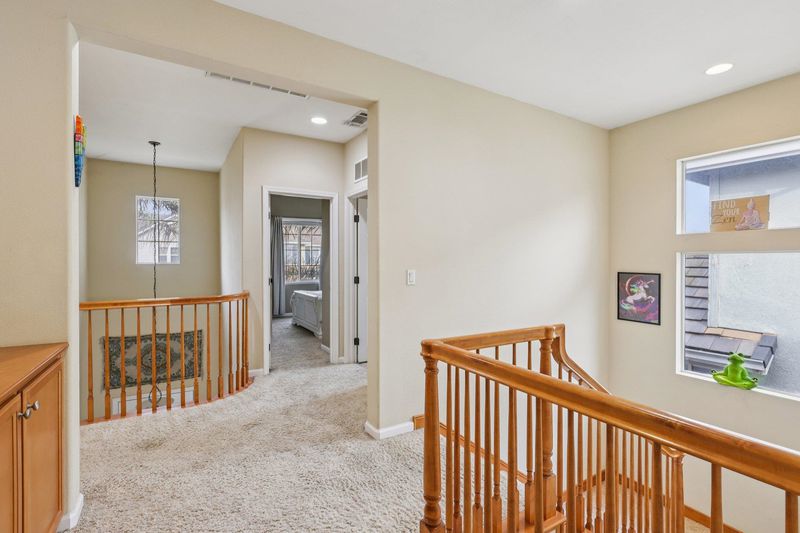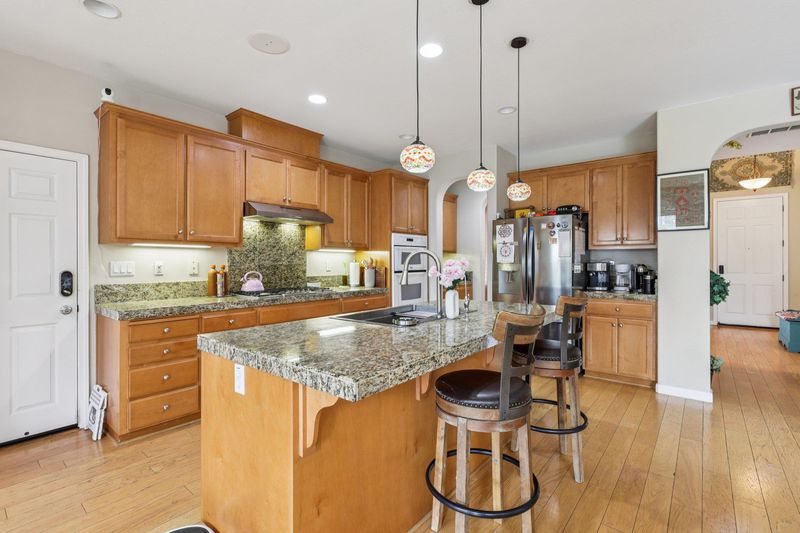 North Facing stunning residence in The Lakes, with Owned Solar, a sparkling pool and one of the community’s most highly sought-after floor plans. This home is splashed with abundant natural light, elegant décor, and a seamless open-concept layout designed for comfort and entertaining. There is a full bedroom and bathroom downstairs, plus hardwood floors and custom window treatments. At the heart of the home is the gourmet kitchen and expansive, elegant Great Room. The kitchen boasts abundant cabinetry, pendant lighting, a Butler's pantry, and generous counter space. Two staircases lead to the upper level, where you’ll find an impressive second family room/bonus room complete with a kitchenette, sink, cabinetry, mini-fridge, and a balcony. The luxurious primary suite offers a spa-inspired bathroom featuring a large soaking tub, stall shower, travertine tile, and an oversized walk-in closet. The private backyard oasis features a beautiful pool with three jet fountains, colorful mature landscaping, and a lighted pavilion. Additional features include arched windows and doorways, an electric car charger, 3-car tandem garage and the solar system has 34 panels. The Lakes offers scenic lakes, walking paths, basketball and pickleball courts, bocce ball, BBQ and more. Welcome Home.