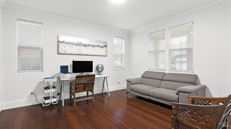 Welcome to 7280 Willow Creek, a beautifully appointed home located in The Orchards at Hiddenbrooke, where comfort, efficiency, and breathtaking surroundings come together. Backing to open space with no rear neighbors, this property offers serene views of the rolling hills and a walnut orchard, along with ample access to nearby trails, parks, and the Hiddenbrooke golf course. This spacious residence features four bedrooms and 2.5 bathrooms, with all bedrooms located upstairs. One secondary bedroom includes its own private balcony, while the primary suite overlooks the hills and orchard, creating a peaceful retreat. An upstairs laundry room adds everyday convenience. The kitchen and living room flow together as an open great room with no separation, creating an ideal space for entertaining and everyday living. The living area features a cozy fireplace, while the kitchen is well-appointed with granite countertops and generous storage. A formal dining room and a flexible downstairs den, easily convertible to a bedroom or home office, round out the main level. The home features engineered hardwood floors throughout the main living areas, with comfortable carpet in the bedrooms, offering both style and warmth. Energy-efficient upgrades include a new electric A/C and heat pump with a 12-year warranty, along with a solar system and an EV charger in the garage, supporting a modern and cost-conscious lifestyle. With open space behind, stunning natural views, and a prime location within The Orchards at Hiddenbrooke, this home offers privacy -an exceptional place to call home.