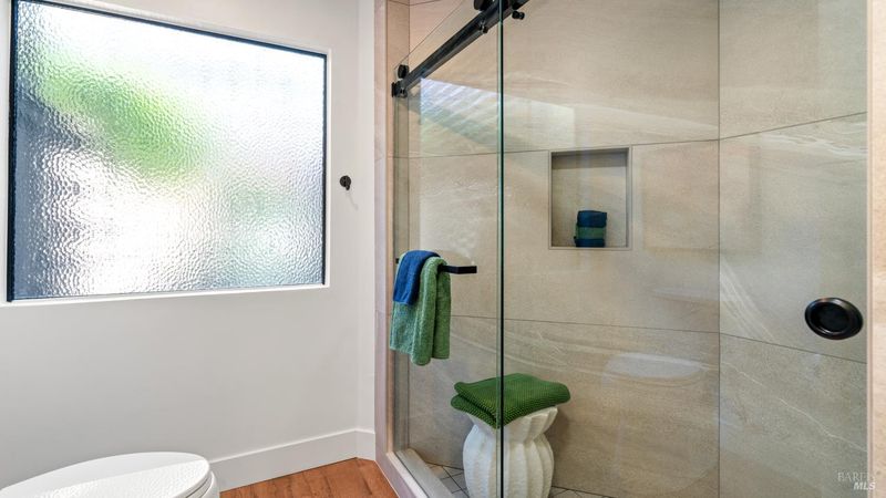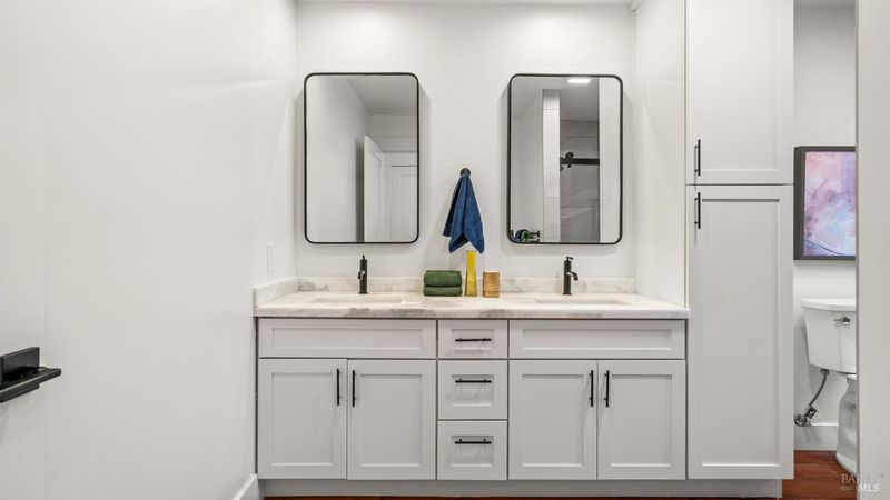- Double Sinks, Shower Stall(s), Stone, Tile