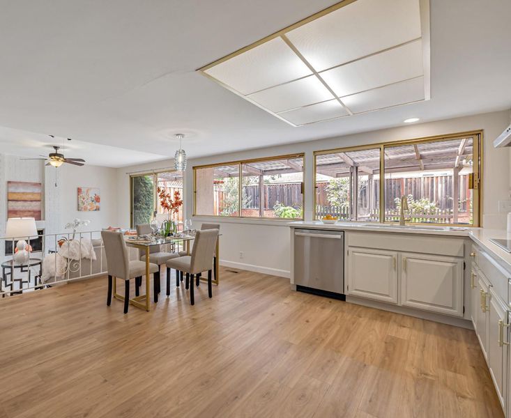 Rare opportunity, to own a home in this highly desirable Cupertino community! Prestigious, top ranked Monta Vista High School adds to the appeal of this east-facing home, conveniently located near parks, shopping, dining, De Anza College, and major tech employers including Apple. Conveniently accessible to 85 and 280. This bright and spacious 4-bedroom, 2.5-bath home offers an open floor plan with abundant natural light and thoughtful upgrades throughout. Enjoy a brand-new updated kitchen featuring quartz countertops, all new appliances, and a convenient eat-in area, complemented by a formal dining room. The inviting family room boast a cozy fireplace, while the primary suite includes a relaxing sitting area and ensuite bath. Additional highlights include a dedicated laundry room with washer and dryer, new flooring throughout, fresh interior paint, copper plumbing, newer central forced air heating and new A/C with Nest remote control. A new roof will be installed starting September 29. The 3 car garage provides ample storage, and the backyard offers raised planters perfect for your favorite vegetables or flowers, plus a classic shuffleboard court ready for repainting or repurposing into a bocce ball space. DON'T WAIT!!!