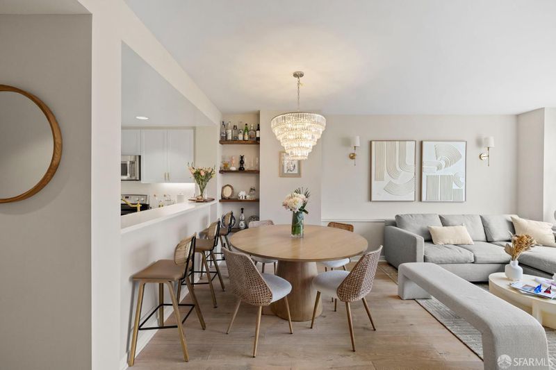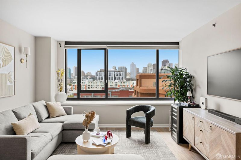 Welcome to Residence 1009 at The Beacon, a full service, amenity rich building in the heart of Mission Bay. This updated 1 bedroom, 1 bath home offers a seamless blend of comfort, style, and convenience. The open concept layout is filled with natural light and showcases sweeping city and downtown views from every window, giving the space a bright, elevated feel. The kitchen features quartz countertops, a large farmhouse sink, stainless steel appliances, and modern cabinetry, seamlessly connecting to the living and dining areas. Hardwood floors, custom built ins, and quality finishes throughout make the home feel turnkey and refined. The spacious bedroom features great natural light, beautifully crafted custom built ins, city views, and a walk in closet. The bathroom includes a modern vanity with a sleek black countertop, updated lighting, and excellent storage, blending clean design with everyday functionality. The home also includes in unit laundry and one car parking, adding ease and convenience to everyday living. The Beacon is known for its resort style amenities, including 24 hour door staff and security, a heated pool and spa, full fitness center, clubhouse, business center, and dog park, creating a true lifestyle experience. Unbeatable location just steps from Oracle Park, Chase Center, the Embarcadero waterfront, top dining, Caltrain, and major commuter routes.