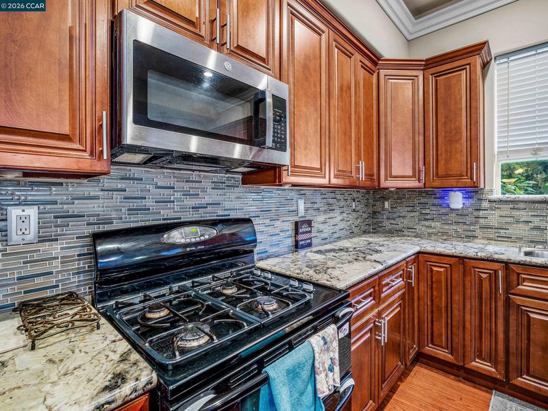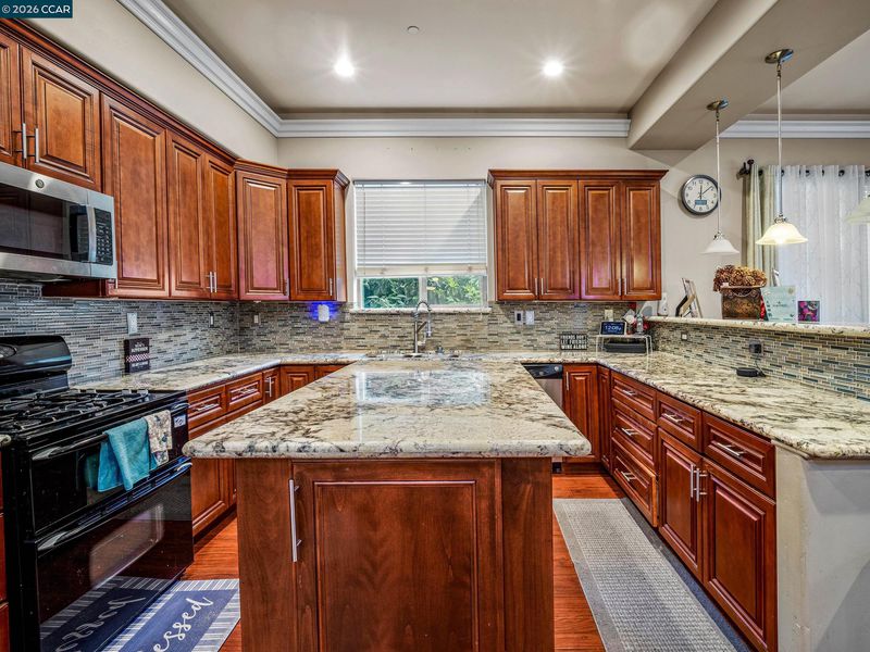 - Dishwasher, Gas Range, 220 Volt Outlet, Breakfast Bar, Disposal, Gas Range/Cooktop, Pantry