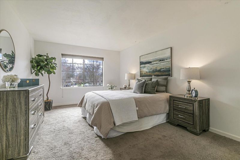 Country Club living at The Villages Golf & Country Club, a 55+ senior community located in the Evergreen Hills of Silicon Valley *** Place a comfortable chair on front porch to watch the beautiful sunsets or enjoy the Serene back Patio w/morning sun overlooking the beautiful hills with chirping birds, wondering deer & nature all around. *** Open into wide Entry & spacious Living room and Dining area, Large Primary Bedroom ensuite plus Guest Bedroom/Den/Office, with view of the hills, plus opens to Living room or close the double doors for privacy. The Galley Kitchen has lots of cabinetry and comfy breakfast nook. *** The Villages offers the following amenities: Spectacular Fitness center with state-of-the-art equipment, both a 9 &18 hole Golf course with putting and practice areas, Tennis, Pickleball, Bocce, 4 Swimming pools with hot tubs, Billiards room with 8 tables, Miles of Hiking trails, Recreational Vehicle Storage areas plus Library, Post Office, Full Wood Shop with power tools, Ceramic shop, Art and Craft Studio and so much more. There is a Theater Group, Bands, Singers and Dancing Groups who provide performances. *** Formal Ballroom for special events and Holiday Banquets, a Wonderful formal Dining room along with Casual Bistro and patio area.