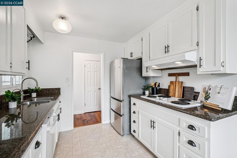 - Dishwasher, Electric Range, Refrigerator, Gas Water Heater, Stone Counters, Electric Range/Cooktop