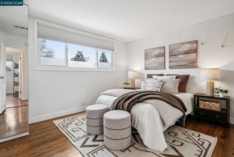 Charming and updated home in sought-after Holbrook Heights! Inviting fenced front yard with metal planters and spacious sitting area. Light-filled interior with large windows, hardwood floors, and shiplap-accented fireplace for a modern farmhouse feel. Updated eat-in kitchen with wood Shaker cabinets, granite counters, updated hardware, and white appliances including double oven. Spacious primary bedroom with two closets; updated baths with custom tile in primary shower. Covered patio extends living space outdoors; sunny backyard with room to entertain, garden, and metal planter. Central heat and air, newer roof & newer sewer line, 2 car garage. HOA amenities include pool & park. Close to John Muir Hospital, Todos Santos Plaza, shopping, dining, freeway access & 2 BART stations.