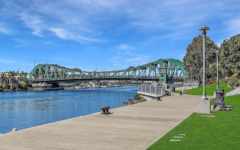 DESIRABLE PRICING. Harborwalk 2-bedroom, 2-bathroom condominium, where modern design and functionality meet the artistic spirit of Oakland's Jingletown community. This spacious ground-floor unit features bedrooms separated by the living room, an expansive private patio close to community fountain with nice vibe, in-unit laundry, and a dining area. The primary suite includes a large walk-in closet, dual-sink vanity, and a beautifully tiled, large shower. Kitchen updates include quartz countertops, quiet-close drawers, Kraus sink, Delta touch faucet and stainless-steel appliances. HOA amenities feature a gym and an underground parking garage, where each deeded parking spot has its own EV charging station. This unit includes one deeded parking spot. Jingletown is centrally located along the Oakland Estuary between the Fruitvale District and Alameda Island—both communities offer plentiful shopping, dining, and entertainment. Jingletown residents enjoy easy access to the trail along the estuary, as well as convenient access to BART, Interstate 880 and Alameda’s Park Street. Don’t miss this opportunity to make this gorgeous condo your new home! Pictures are taken before furniture was placed inside property.