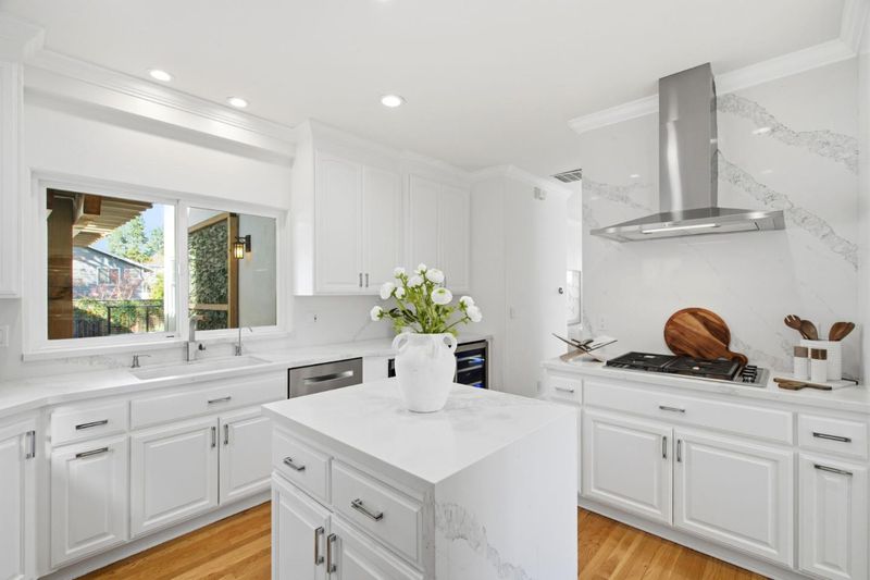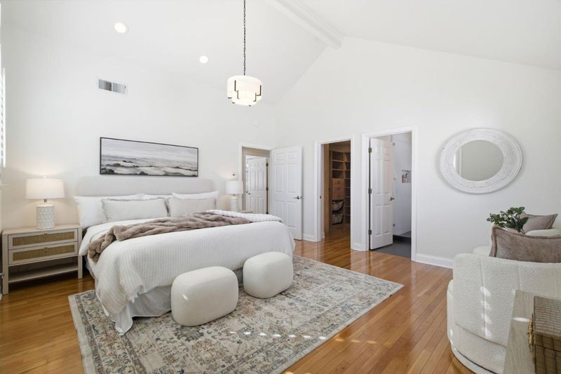 Fantastic family home in extremely close proximity to Downtown Los Gatos. Enter the home into a welcoming foyer with soaring 16 ft ceiling. The living room lights up with wonderful natural light from the picture glass window and is open to the dining area. The kitchen features beautiful White Quartz Countertops, double ovens a nice prep island and has a convenient side door to the gated driveway. The incredibly spacious family room, that can also be utilized as a 4th bedroom, has direct access a full bathroom as well as to the backyard featuring a large deck for outdoor entertaining with a stone mantel gas fireplace. Oversized primary bedroom with soaring vaulted ceilings, a large custom walk-in closet and a beautiful remodeled bathroom with dual vanities and a glass enclosed shower. Two large upstairs bedrooms with great closet organizers. Hardwood flooring throughout. Separate bonus room on the backside of the garage, is perfect for an office. Front yard is highlighted by a stylish stone entryway and stacked rock wall. Immaculate low maintenance freshly landscaped front and back yards. Freshly painted interior and exterior. Super close to all that Downtown Los Gatos has to offer! Easy access to the Los Gatos Creek trail via the new ramp. Top rated Los Gatos school district.