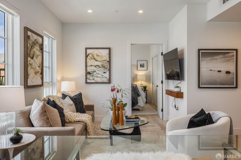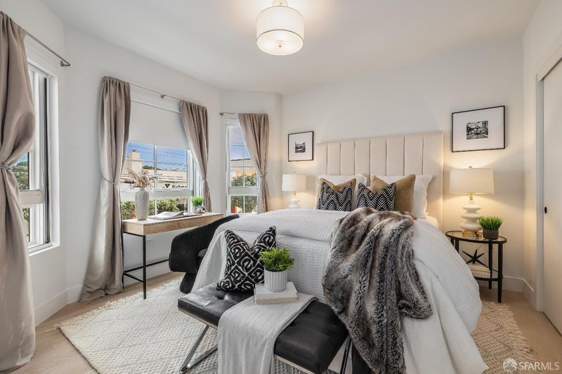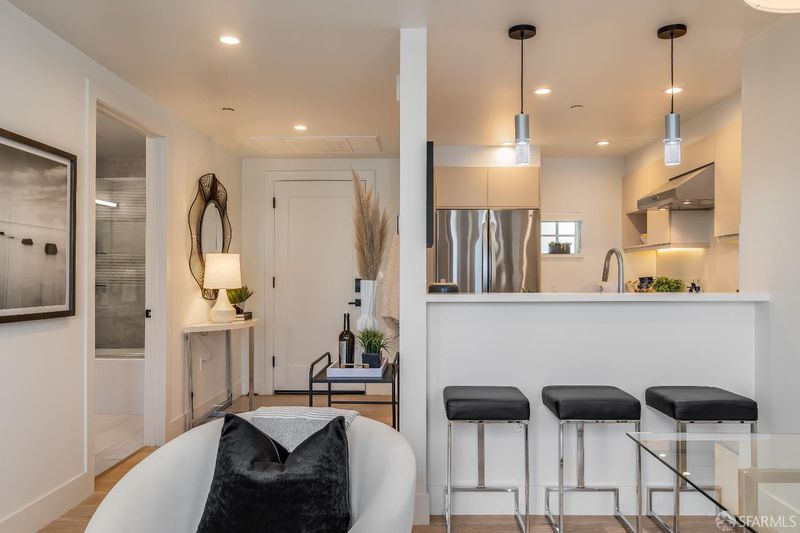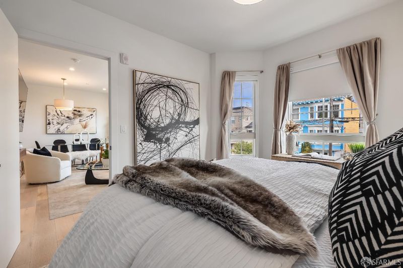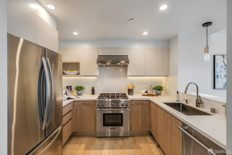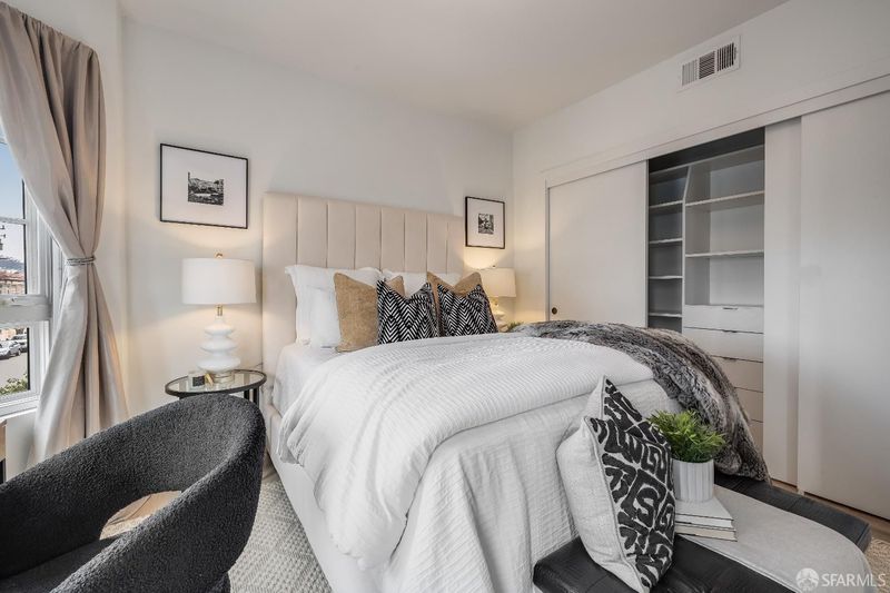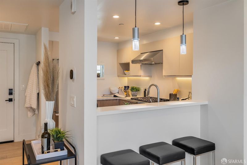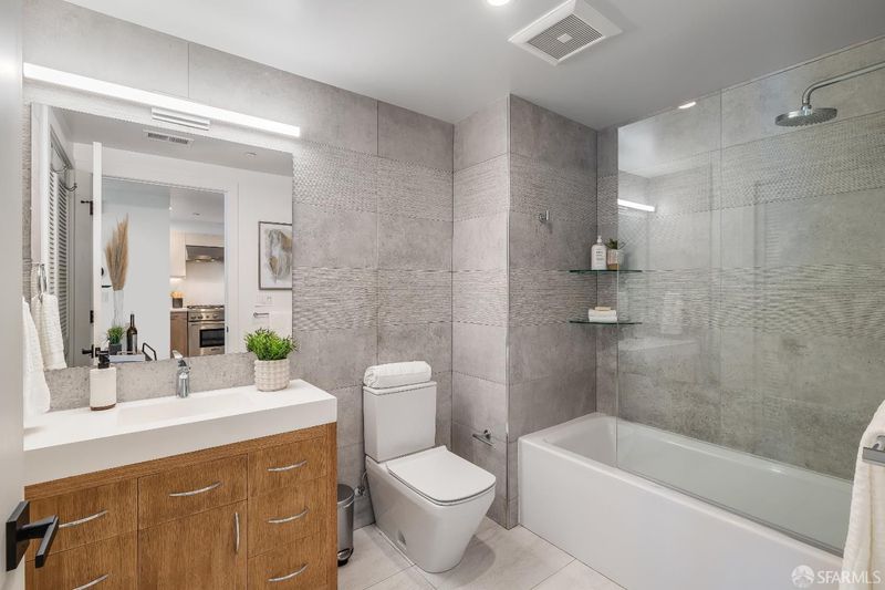 Welcome to The Alexandria unit 203. This modern 1BR/1BA/1PK home offers the best of San Francisco living. Built in 2018, the Alexandria, is a luxury elevator building with two courtyards, secure garage parking and air conditioning. Unit 203 is the former model home and features luxe, white stone countertops and high-end, stainless steel appliances in its gas-fired, chef's kitchen. The bath also features quality details such as Hansgrohe® fixtures, a soaking tub and floor to ceiling tile. Located between Geary and Clement Street in the vibrant Richmond, it's an easy walk to cafs, shops and restaurants such as Lokma, Jijime, Pizzetta 211 and so many others. Easily commute downtown on the MUNI express lines or work from home in your own quiet and secure refuge. Come see!
