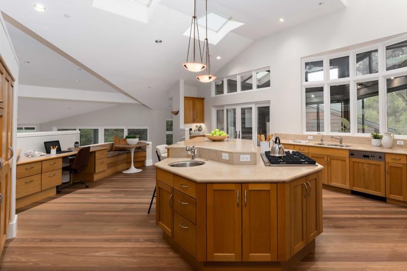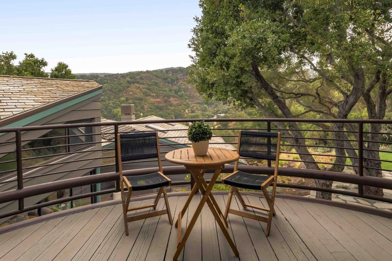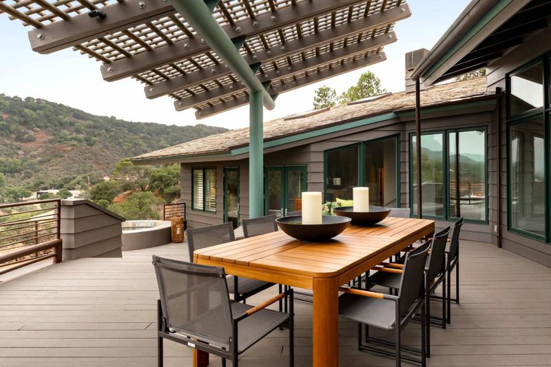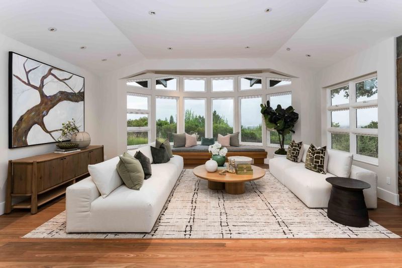 Set behind gates, this 4-bed, 3.5-bath estate offers privacy, beauty, and exceptional craftsmanship on over an acre. An extended driveway leads to its elevated position, where panoramic views of the western hills and SF Bay unfold in every direction. Designed by architect Robert Peterson and built by Drew Maran Construction, the home pairs sustainability with livable luxury and sophistication. Soaring ceilings and bold walls of glass fill the interiors with light and frame the views throughout. A harmonious floor plan includes expansive gathering spaces, a chef's kitchen with top appliances, and a walk-out family room, with a wine cellar, office, and multiple fireplaces adding comfort and functionality. The primary suite spans the entire upper level, while three additional bedrooms offer space for family and guests. Outside, enjoy a spa deck, new lawn, and screened-in porch, all just two miles from the Los Altos Village and served by top schools (buyer to verify eligibility).