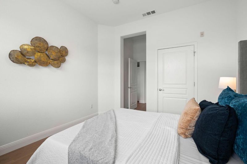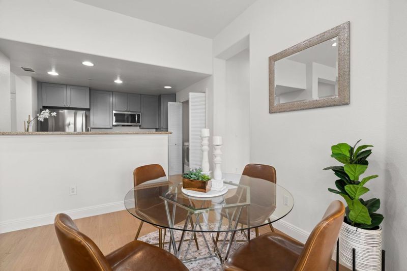 STYLISHLY UPDATED GROUND-LEVEL CONDO | Featuring private bedrooms that flank the gathering area, this sought-after unit in the Mission Terrace community also boasts 10-foot ceilings and light-filled spaces creating an airy retreat abounding with versatility and convenience. Upgrades include newly installed floors, new paint, plantation shutters, Nestî climate control, a Ringî video doorbell, and refinished cabinetry. The updated kitchen showcases stainless appliances and granite countertops, while the covered patio is concealed by greenery for privacy. Both bedrooms are spacious with walk-in closets, and the primary suite offers dual vanities and custom storage. Includes central AC, an in-unit laundry, and quick access to two side-by-side reserved garage spots. Community amenities include a pool and spa, playground, gym, and more. Within just ONE MILE are parks, Don Callejon School (K-8), Safeway, Rivermark Plaza, and campuses for Oracle, Intel, and MORE!