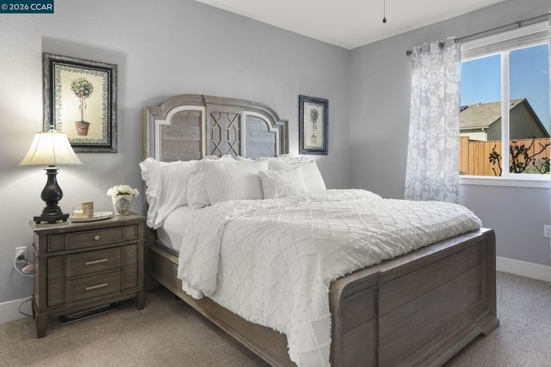 New Price! Single-story, solar-powered home on a .15-acre lot that shows like a model! Pride of ownership shines throughout this meticulously maintained home in the desirable Aviano community. The chef’s kitchen features quartz countertops, tile backsplash, designer cabinetry with LED lighting, LG stainless steel appliances, center island, pantry, and dining area—opening seamlessly to the spacious family room. Family Room has surround sound pre wiring for home theatre. The wide-open floor plan offers tall ceilings, recessed lighting, and ceiling fans throughout, with tile flooring and plush carpeted bedrooms. Enjoy the benefits of a buyer-owned 2.79-kW solar system with average monthly electric bills around $15, plus a tankless water heater and included LG washer and dryer. The spacious backyard includes a concrete patio, lush grass, and mature trees—perfect for relaxing or entertaining. Low HOA of $100/month. Residents enjoy over 25 acres of green space, parks, playgrounds, bocce ball courts, two dog parks, and walking and biking trails, with Miwok Meadows Park just blocks away. Conveniently located near Highway 4, BART, Antioch/Brentwood shopping including Costco, dining, and entertainment.