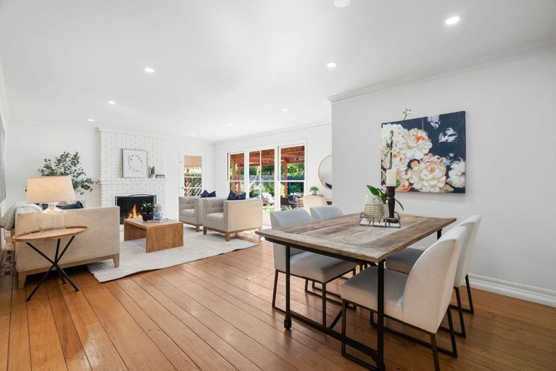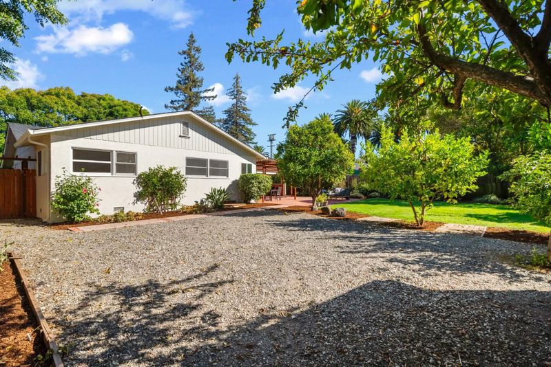 Set on a generous 10,125-square-foot lot, this inviting three-bedroom, two-bathroom Los Altos residence blends comfort, natural light, and thoughtful updates. Set back from the street and surrounded by lush green trees and bushes this single-level floor plan is enhanced by hardwood floors throughout, freshly painted interiors and exterior, and recessed lighting that creates a bright, welcoming atmosphere. Outdoors, the sun-drenched backyard provides a versatile canvas for living whether enjoying a quiet afternoon on the shaded patio nook, gathering for games on the open lawn, or cultivating citrus and fruit trees in the garden. The rear yard is currently accented by fig, orange, apple, plum and even a pumelo tree. The living and dining rooms extend effortlessly toward the outdoors, where a wall of windows captures leafy views of the expansive backyard. With its warm character, versatile layout, and sun-drenched outdoor spaces, this residence offers an exceptional opportunity to enjoy Los Altos living at its best. Discover the perfect balance of comfort and style. Just moments away are parks, shopping conveniences, El Camino Hospital, as well as Oak Elementary, Blach Middle and Mountain View High School (Buyer to verify attendance).