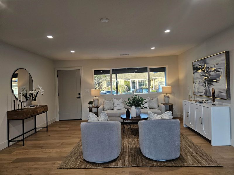 OPEN 2/7, 1-4!Experience the pinnacle of modern living in this masterfully renovated residence located in the coveted Acalanes Ridge enclave. Rebuilt from the studs in, this home offers the peace of mind of new construction with the character of an established neighborhood. Upon entry, you are greeted by gorgeous European engineered hardwood floors that guide you through an open, sophisticated floor plan. The heart of the home is the elegant Chef’s kitchen, designed for both the culinary enthusiast and the avid entertainer. Anchored by a suite of premium Bosch appliances and a deep double stainless sink, the space flows seamlessly into a dramatic dining area and expansive living room, creating the perfect backdrop for gatherings. Retreat to the primary suite, a true spa-inspired haven featuring a breathtaking standalone soaking tub, a seamless walk-in shower, and serene views of the lush backyard. The versatile layout offers 2 additional spacious bedrooms—one boasting a private en-suite bath and the other featuring a unique architectural loft, perfect for a creative workspace or reading nook. Outside, the expansive backyard serves as a blank canvas for your hobbies, gardening, or al fresco dining. Perfectly positioned near top-rated Springhill Elementary and Acalanes High School.