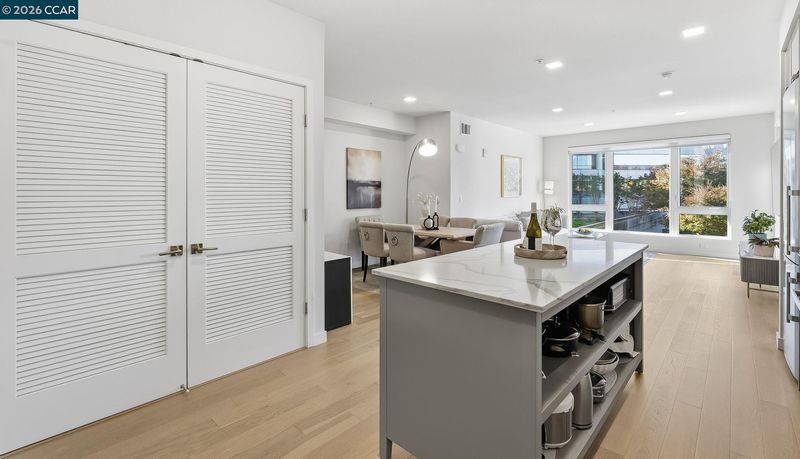 Nestled in the heart of downtown Walnut Creek, this bright and modern 1,074 sq ft, 2-bedroom, 2-bath home at The Riv offers the perfect blend of style, comfort, and convenience. With contemporary finishes and a thoughtful open layout, it’s designed for easy living in one of Walnut Creek’s most desirable locations. Step inside to soaring floor-to-ceiling windows, hardwood flooring, and abundant natural light that fills every corner. The European-inspired kitchen features sleek cabinetry, quartz countertops, a spacious island, and stainless-steel appliances—seamlessly connecting to the open living area and south-facing balcony with peaceful, tree-lined views. The primary suite offers balcony access, generous closet space, and a beautifully updated bath, while a convenient office nook sits just outside the secondary bedroom—ideal for remote work or study. Additional highlights include two deeded garage spaces, an extra storage unit, an in-unit laundry closet, and access to exceptional community amenities such as a rooftop deck with BBQ, garden patio with firepit, and a modern work lounge. With shopping, dining, BART, and freeway access just steps away, this home combines luxury, location, and lifestyle—modern downtown living at its finest.