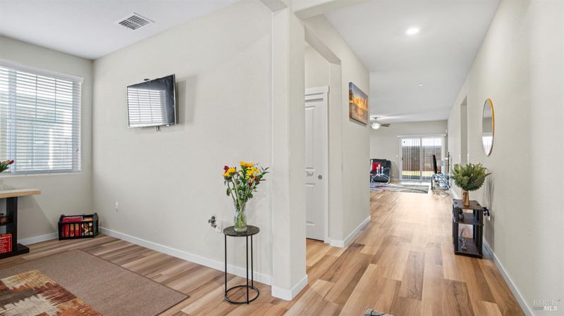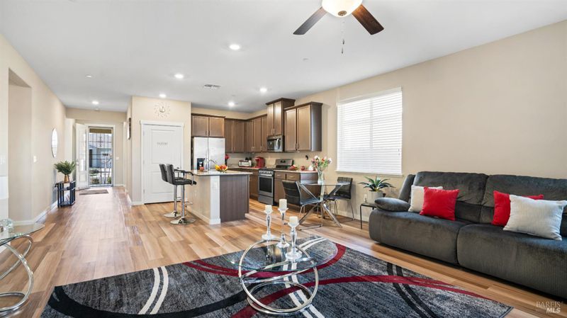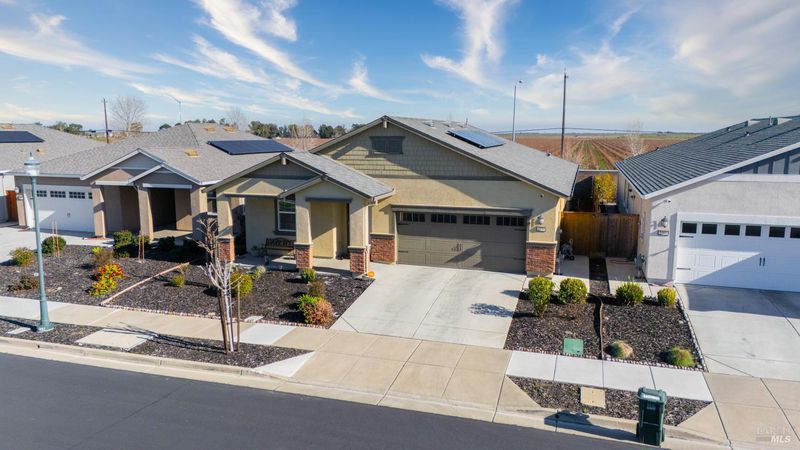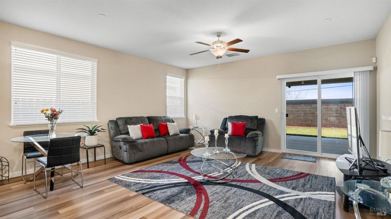 Welcome to this newer move-in ready home in a sought-after 55+ adult community. Thoughtfully designed and beautifully maintained, this single-story home features both a spacious family room and a separate living/flex room, providing extra space for relaxing, entertaining, or hobbies. The heart of the home is a gourmet kitchen with large island, pantry, granite countertops, rich dark chocolate cabinetry, built-in microwave, and gas stove/oven perfect for cooking, gathering, and hosting. The home offers a large, private rear yard with block wall fencing, creating a peaceful outdoor retreat with no rear neighbors. Enjoy seamless indoor-outdoor living with a spacious covered patio accessible from both the primary bedroom and family room ideal for morning coffee or evening relaxation. Additional highlights include owned solar and a whole house fan, helping reduce utility costs while enhancing year-round comfort. Combining comfort, style, and efficiency. Community amenities include short stroll to Tennis & Bocce Ball courts, Clubhouse with Gym, Swimming pool and Hot Tub and more. A must-see!