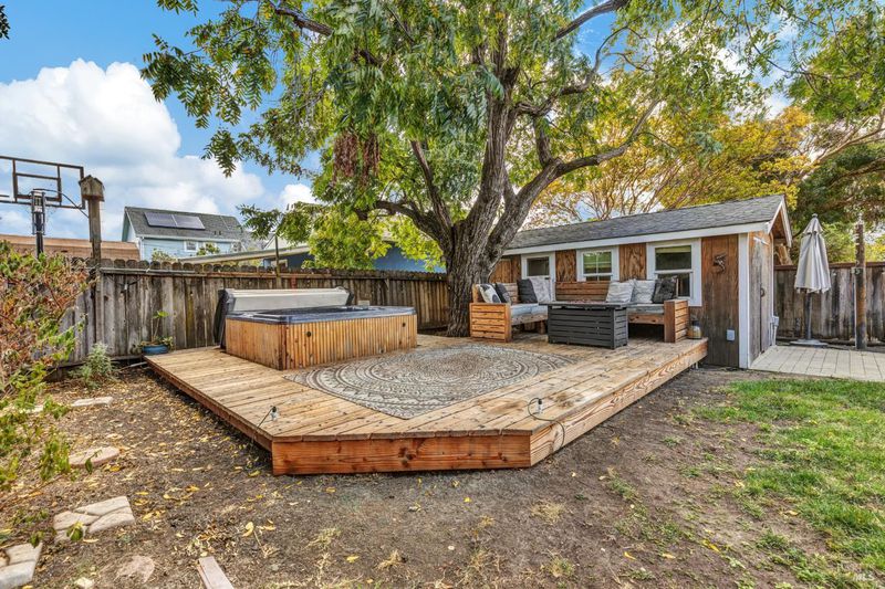 Sweet bungalow home in downtown! This home boasts personality throughout - from the charming front porch entry, to the cheerful colors inside and out, to the large living space and inviting kitchen, to the spacious and private backyard. Imagine strolling 4 blocks to First Street, where delicious restaurants and bakeries entice you, chic shops, live music and festivals await! Only 5 blocks to the Benicia marina and the waterfront. Return home for a soak in the hot tub beneath the big tree. Tinker in your workshop and take your hobbies to a new level! This vibrant community town will welcome you home!